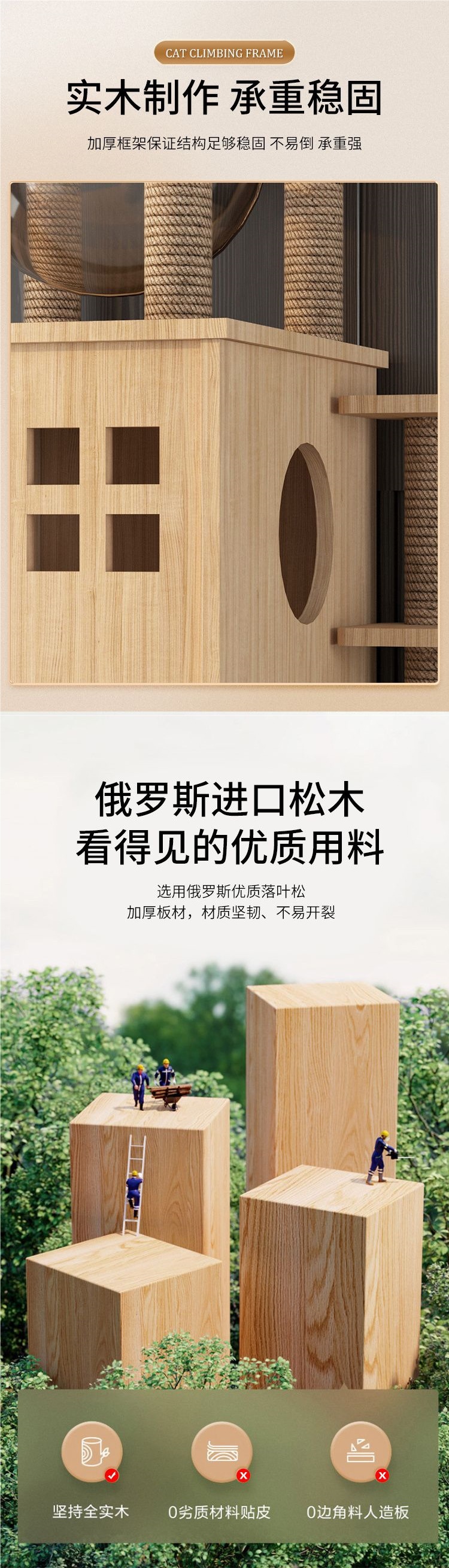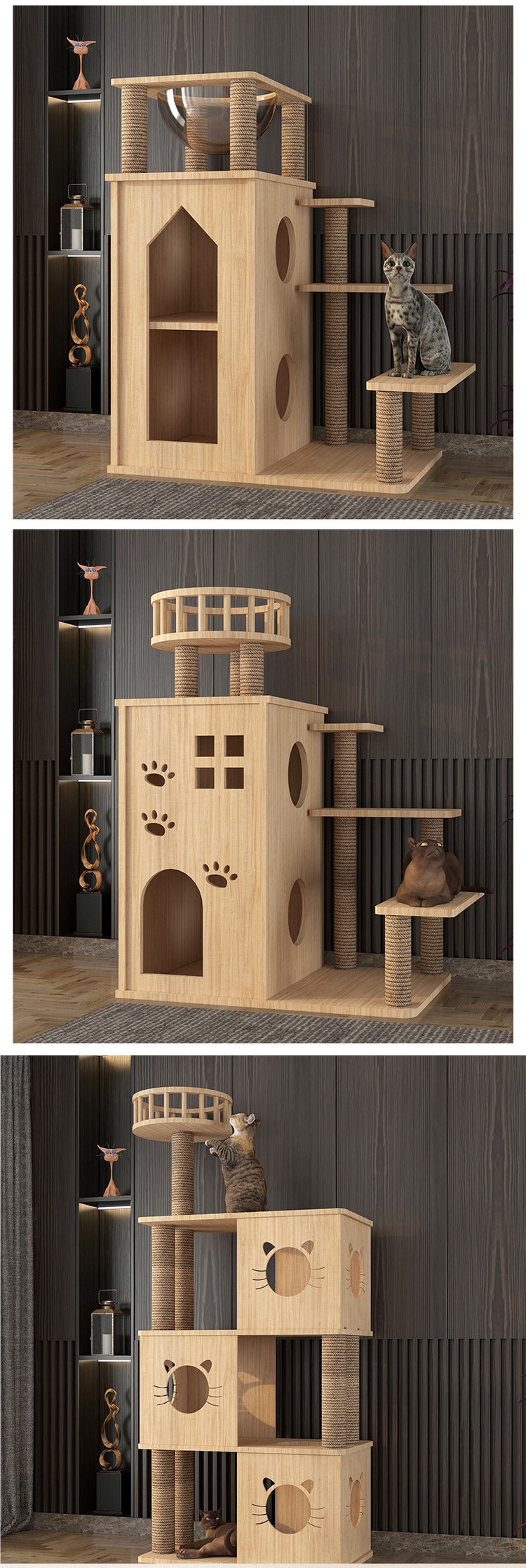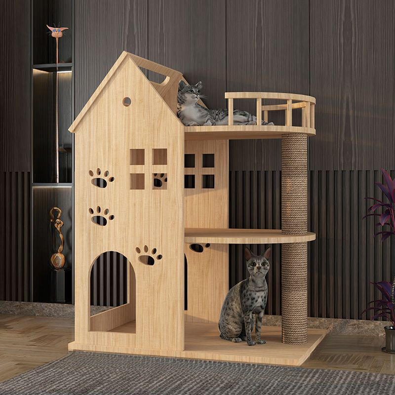 클리어런스 럭셔리 고양이 빌라 고양이 클라이밍 프레임 원목 DIY 일체형 고양이 스크래치 컬럼 3층 고양이 둥지 고양이 성 클리어런스 처리스토어 가기