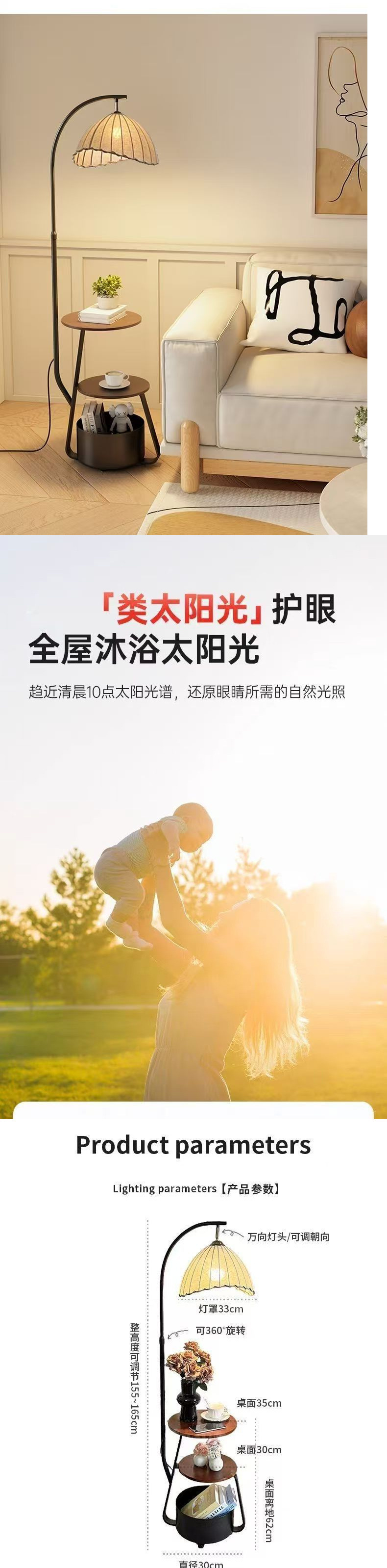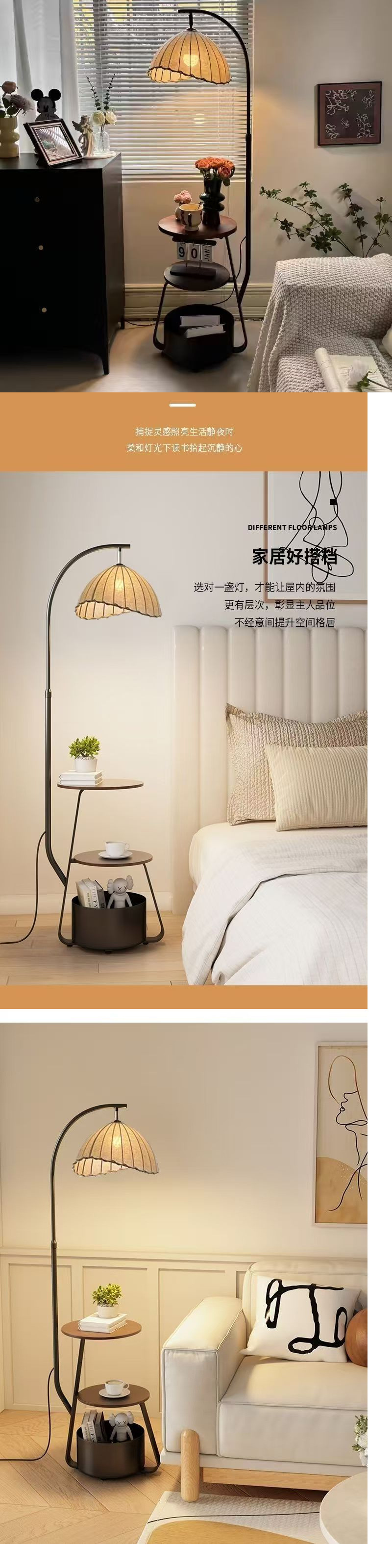플로어 램프, 중세 스타일 침실 침대 옆 테이블, 일체형 유자 램프, 거실 소파 옆 분위기 있는 커피 테이블, 낚시 램프스토어 가기