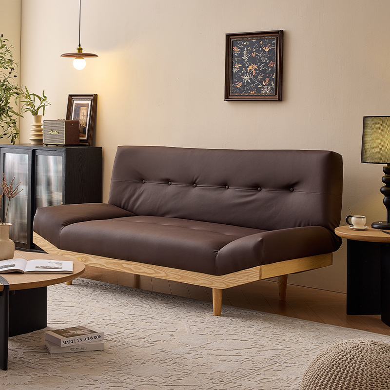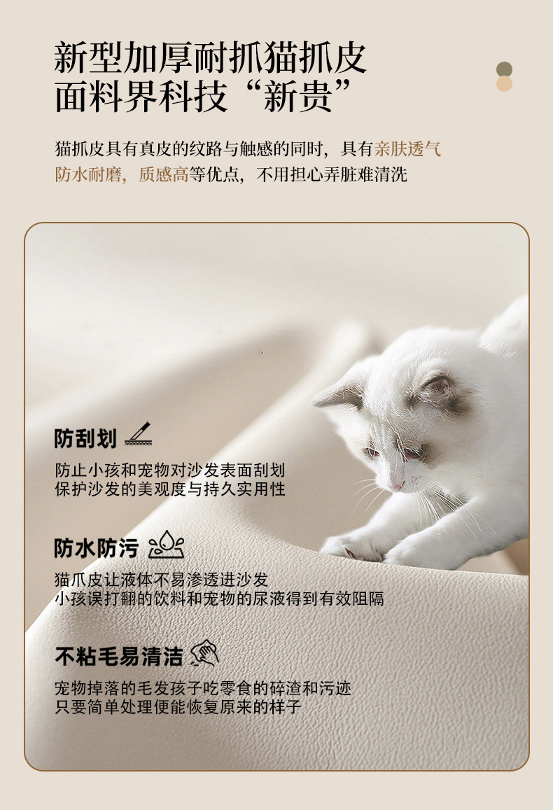 • 고양이 발톱 가죽 커피 색상 목재 색상 베이스 프레임