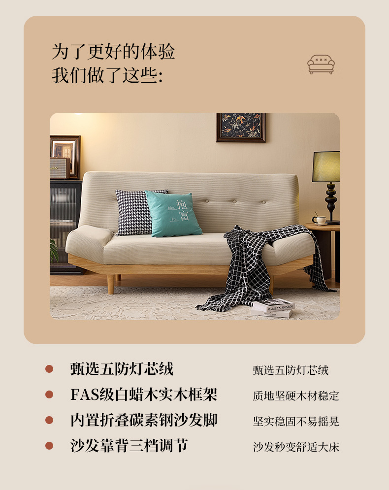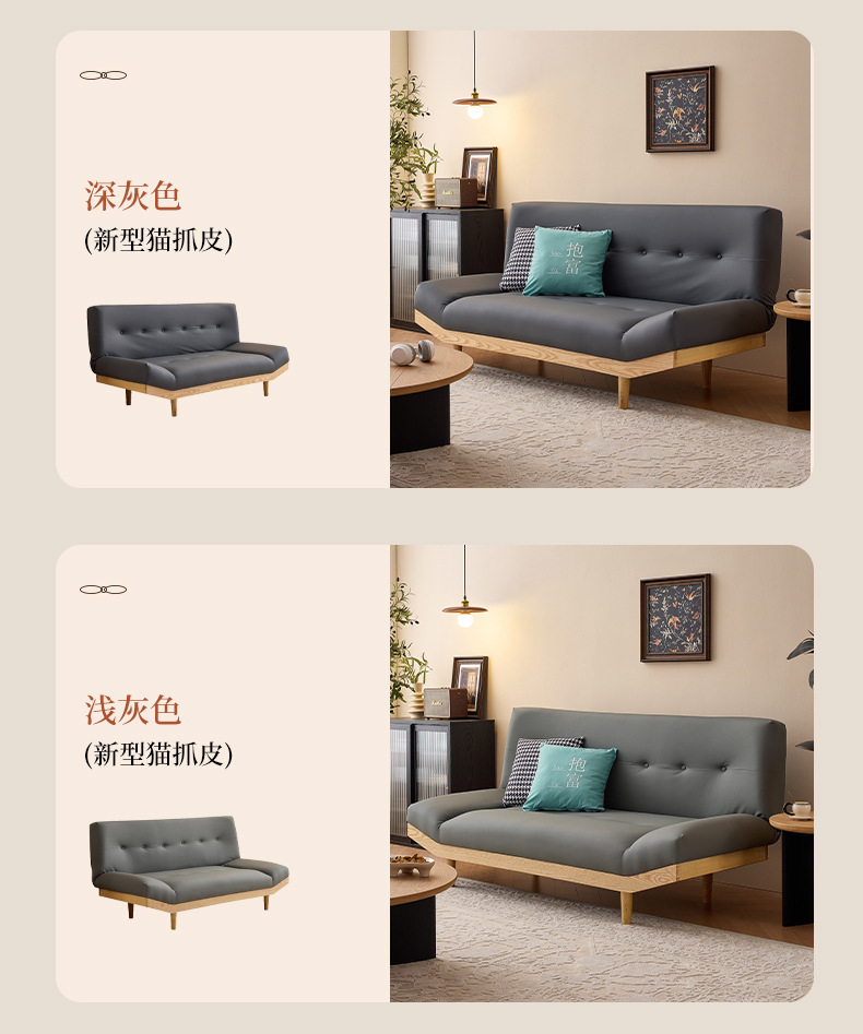 작은 거실 단단한 나무 구름 패브릭 소파 침대 2-in-1 싱글, 더블 및 트리플 접이식 소파 침대 2-in-1