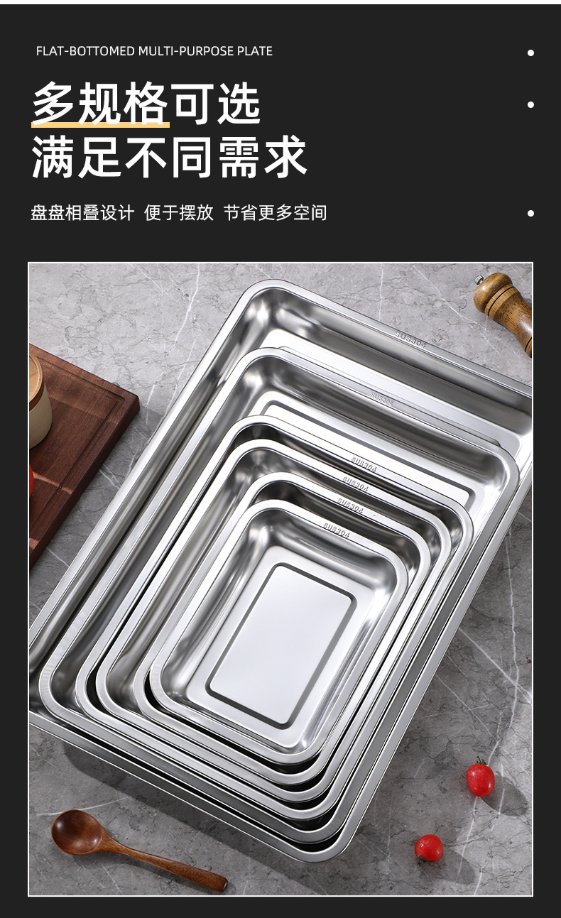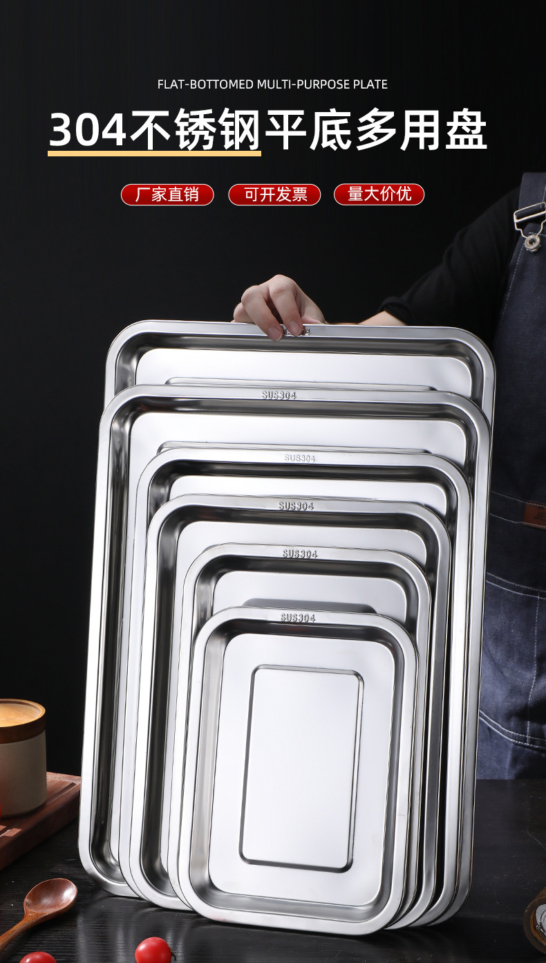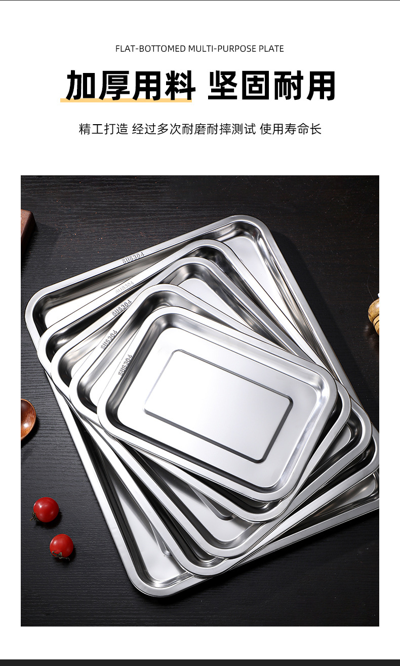Jingwang 304 스테인레스 강판 직사각형 트레이 만두 접시 생선 구이 접시 사각형 접시 바베큐 접시 찐 쌀 접시 누출 접시스토어 가기