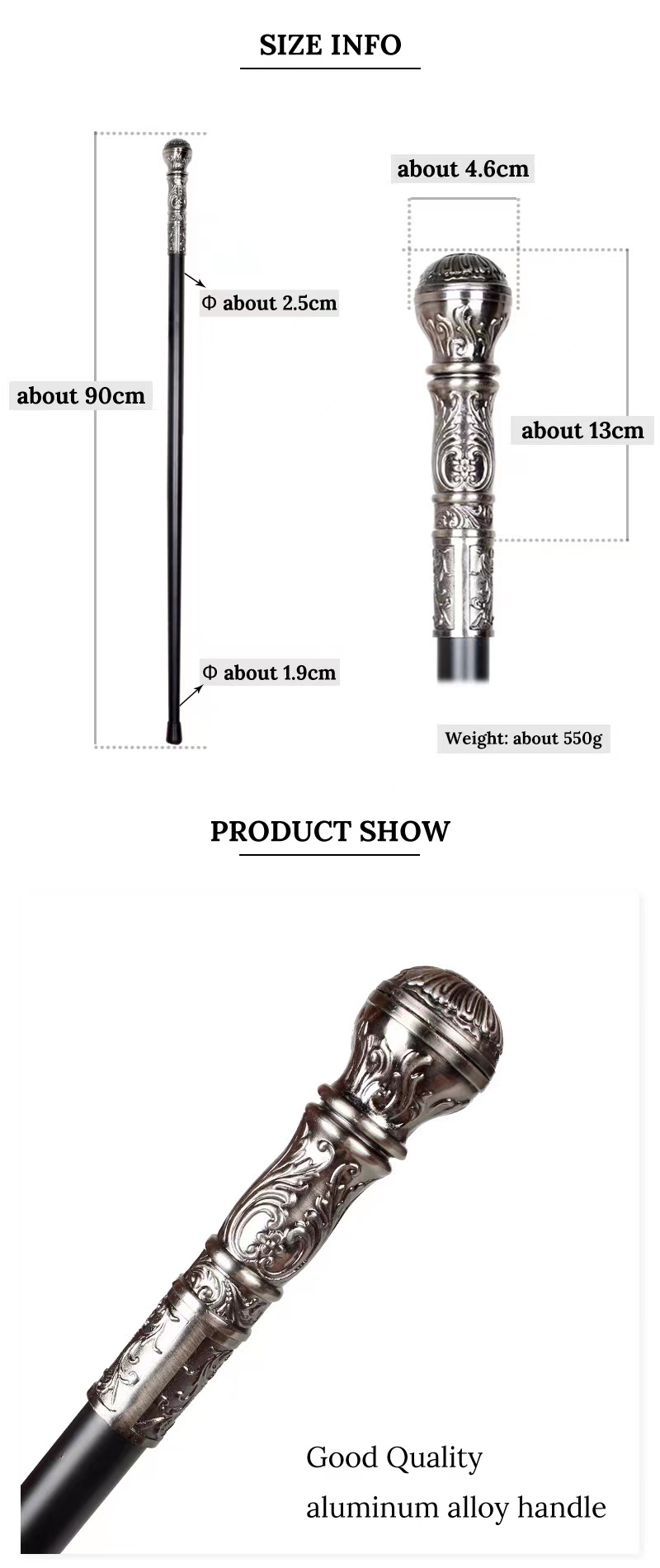 실버 라운드 헤드 로리타 소품 코믹 콘 지팡이 금속 신사 지팡이 노인 문명 지팡이 선물 패션 남성과 여성스토어 가기