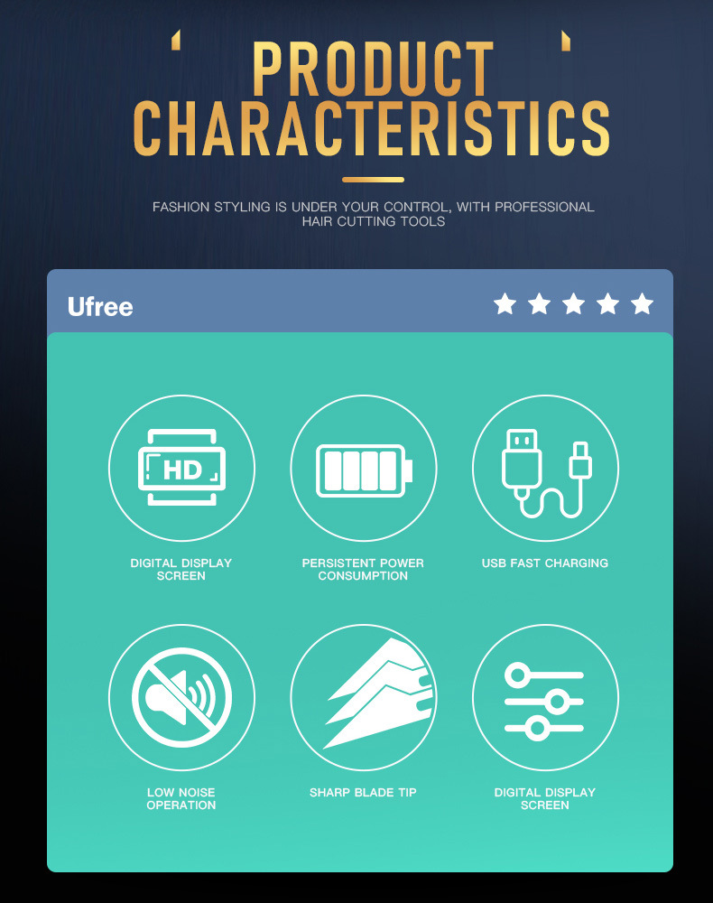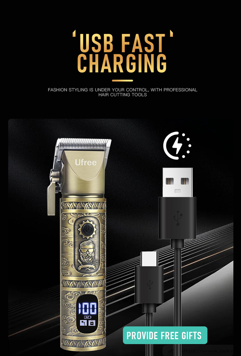 配件:8个理发剪导(1/16英寸,1/8英寸,3/16英寸,1/4英寸,3/8英寸,1/2英寸,5/8英寸,3/4英寸,理发围布x1,清洁刷x1,梳子x1,润滑油x1,Type-C充电线x1。