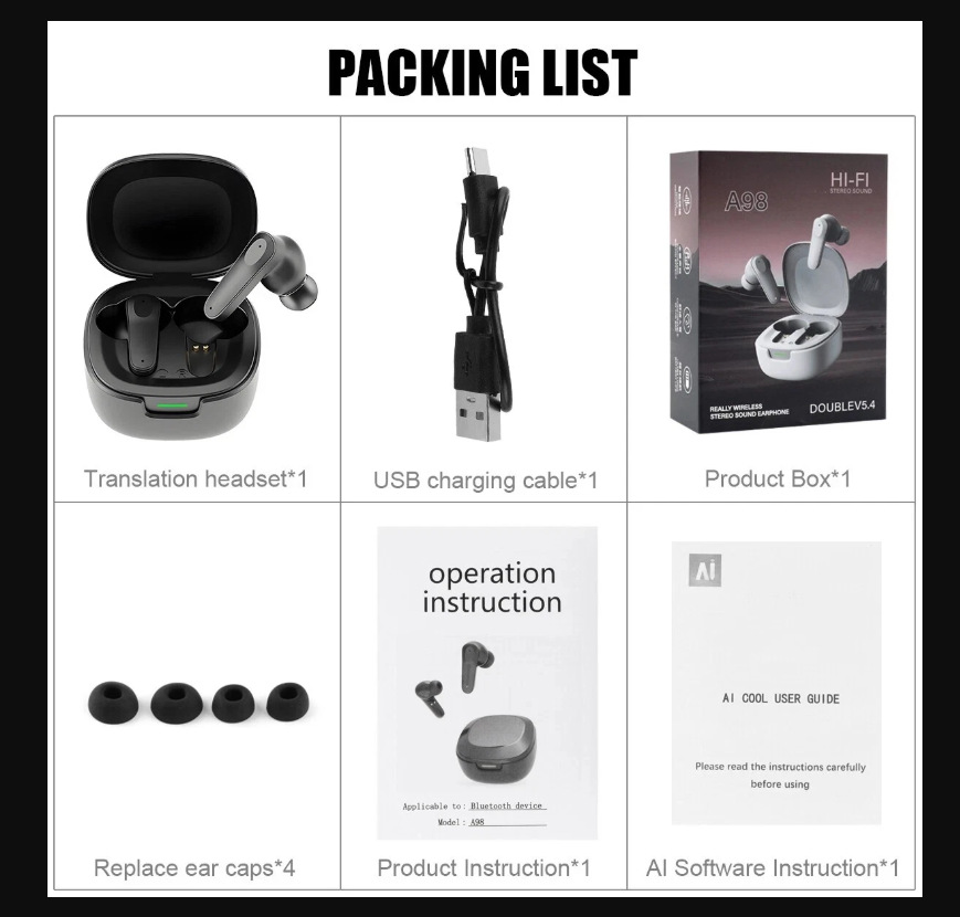 • A98 [0180 블랙] (번역 기능을 사용해야 하는 경우 AI 코드를 추가로 구매해야 합니다. 그렇지 않으면 기본적으로 기능이 포함되지 않습니다)