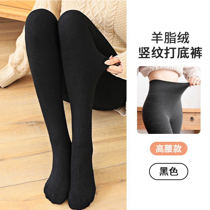 가을 겨울 여성용 스레드 레깅스, 벨벳으로 두꺼워진 따뜻한 면 팬츠, 슬리밍 세로 줄무늬 양말, 발을 밟는 팬티 스타킹