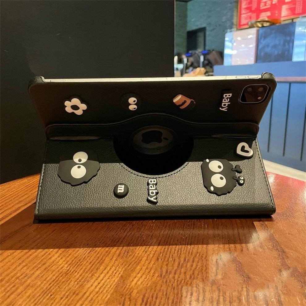 만화 검은 석탄 볼 대체 보호 커버. Apple에 적합한 회전 가죽 케이스 무료 배송스토어 가기