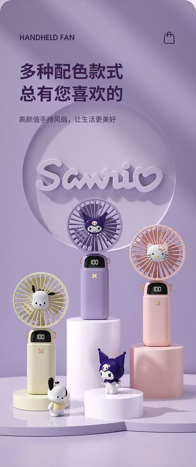 Sanrio의 새로운 휴대용 소형 팬 휴대용 무음 미니 책상 학생 수업 충전스토어 가기