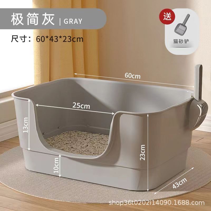 • : 80cm 빅맥 고양이 배변 상자 그레이 (뚱뚱한 고양이와 다중 고양이 가족에게 선호) [고양이 배변 국자 포함]
