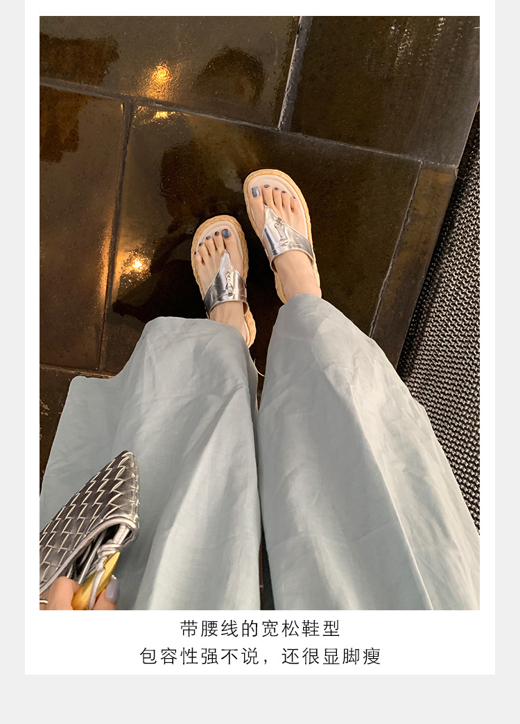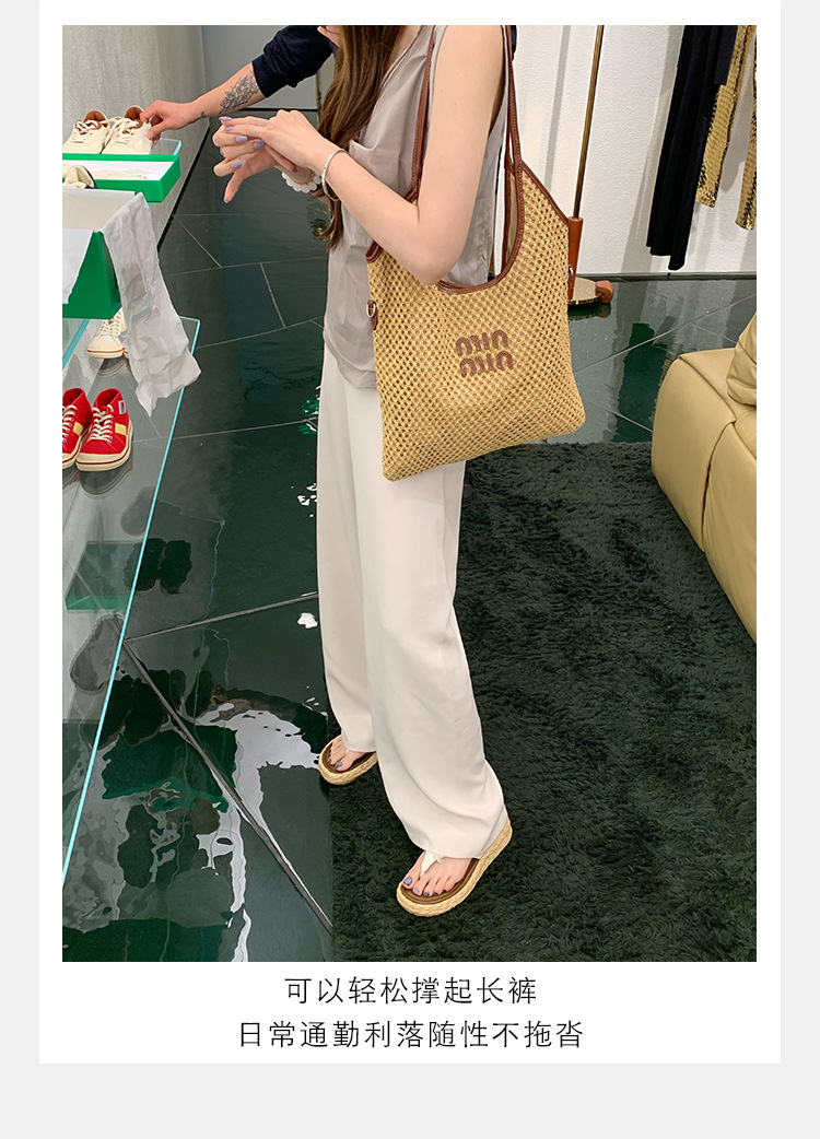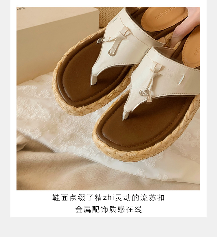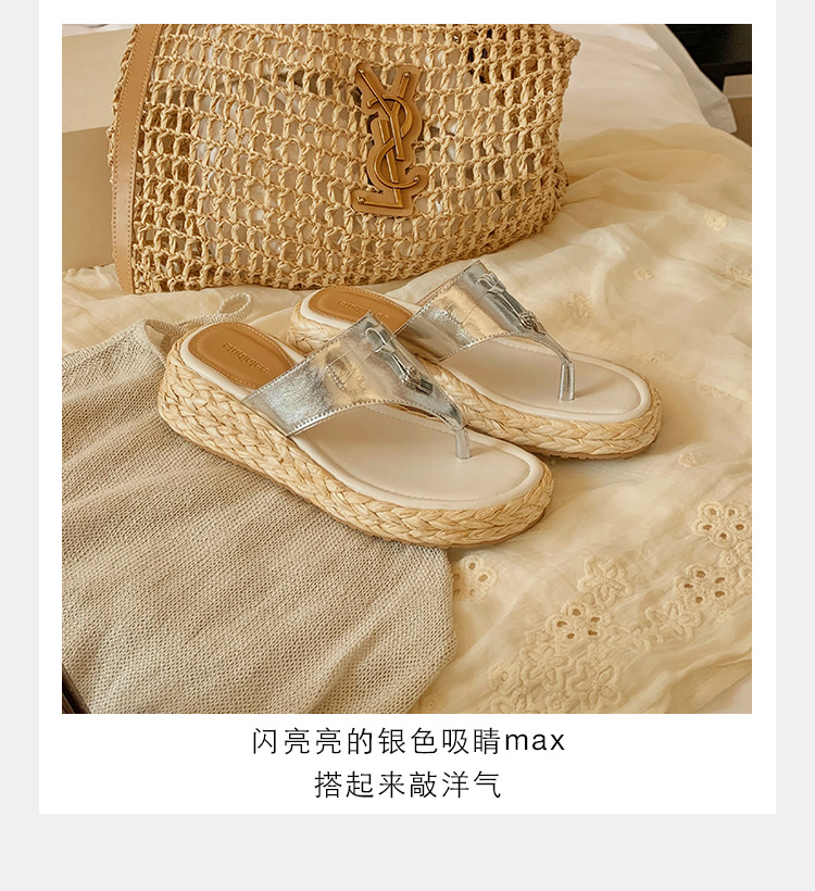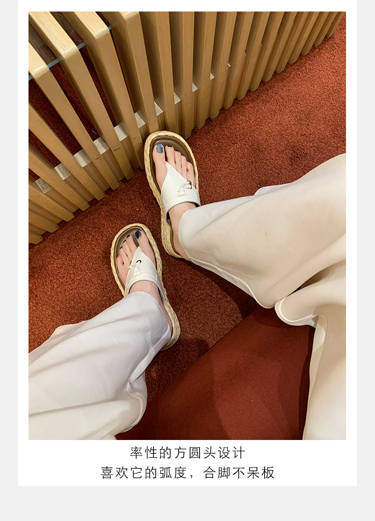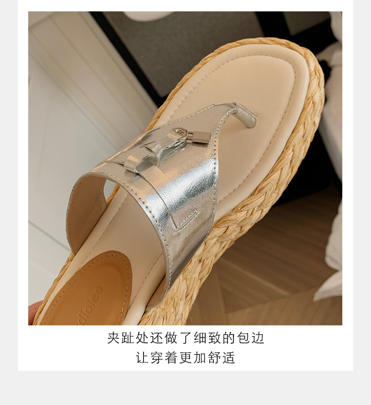 여름 아우터로 입기 좋은 여성용 스몰 슬리퍼, 키 5.5cm 증가~ 두꺼운 밑창 태슬 버클 슬리퍼, 헤링본 밀짚 샌들
