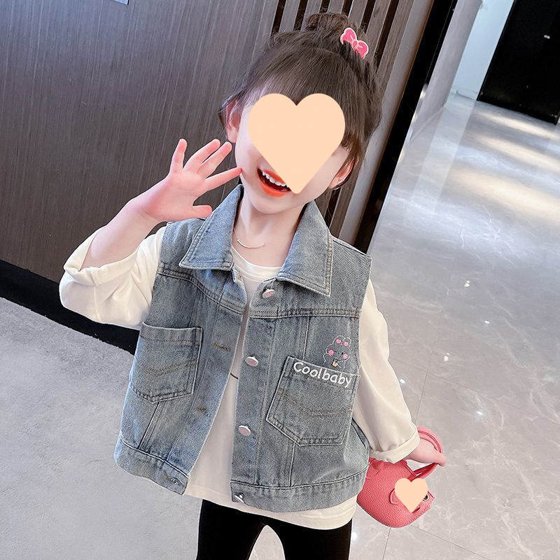 여자 데님 조끼 봄, 가을 2025 새로운 스타일 외국 인터넷 연예인 조끼 겉옷 봄 의류 어린이 유행 봄 코트