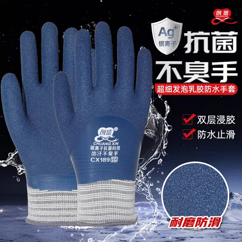 Chuangxin 노동 보호 장갑 CX189 냄새가 나지 않는 손 작업 내마모성 미끄럼 방지 이중층 딥 고무 방수 건설 현장 작업 장갑