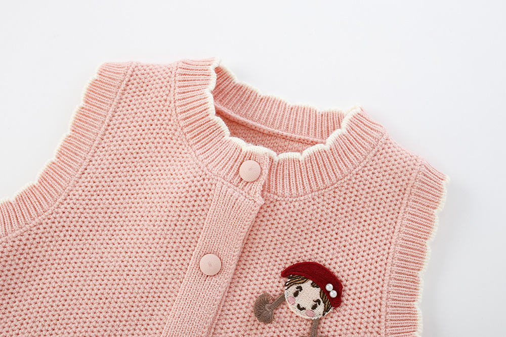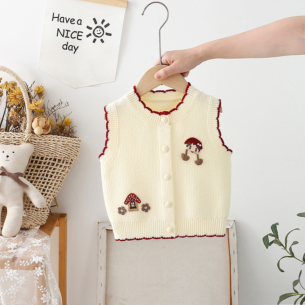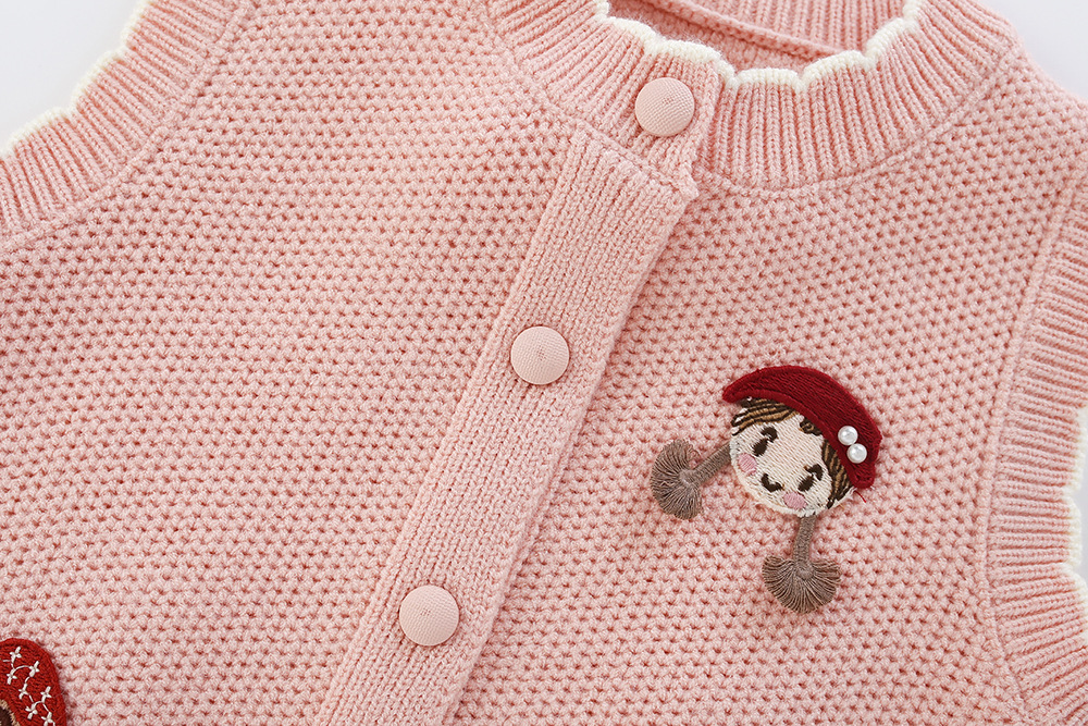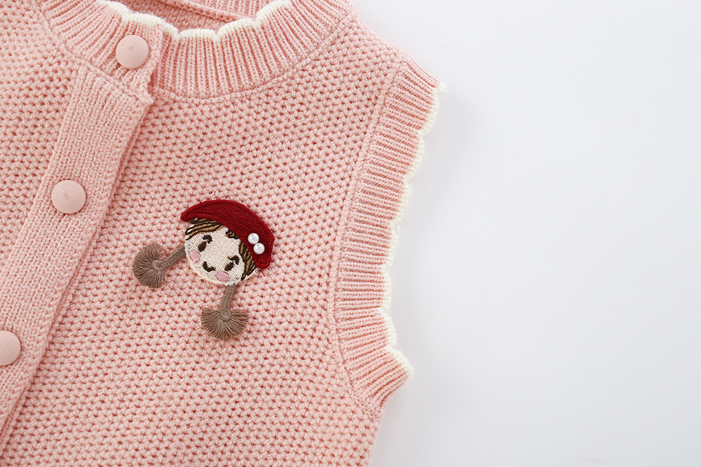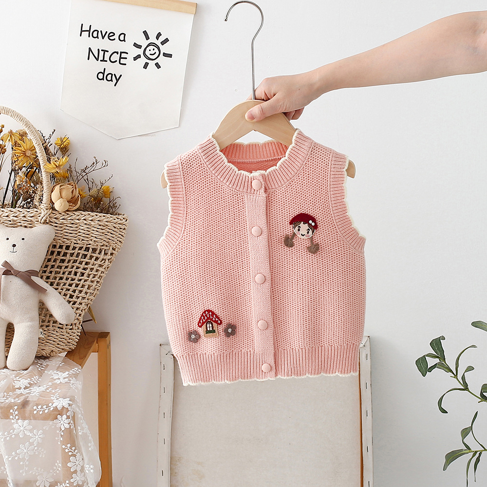 여자 니트 조끼 봄, 가을, 겨울 겉옷 만화 아기 카디건 라운드 넥 스웨터 아기 모직 조끼