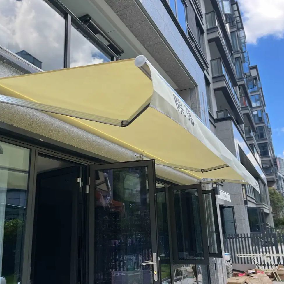 발코니에 있는 접이식 수동 개폐식 전동 도어가 있는 차양막, 방수 처마 텐트, 야외 안뜰 차양막스토어 가기