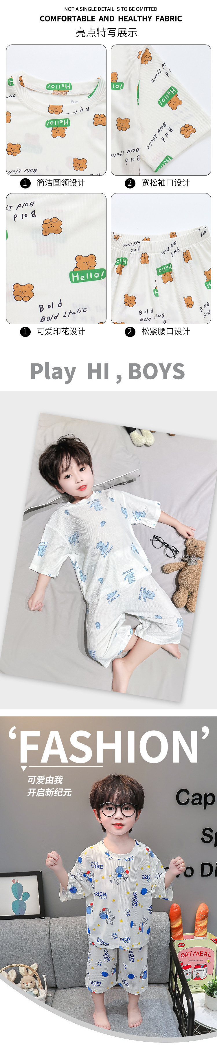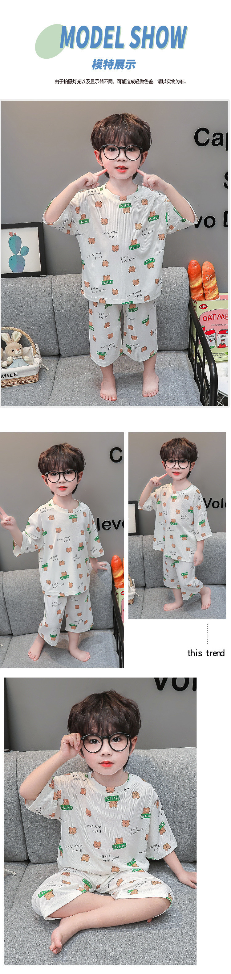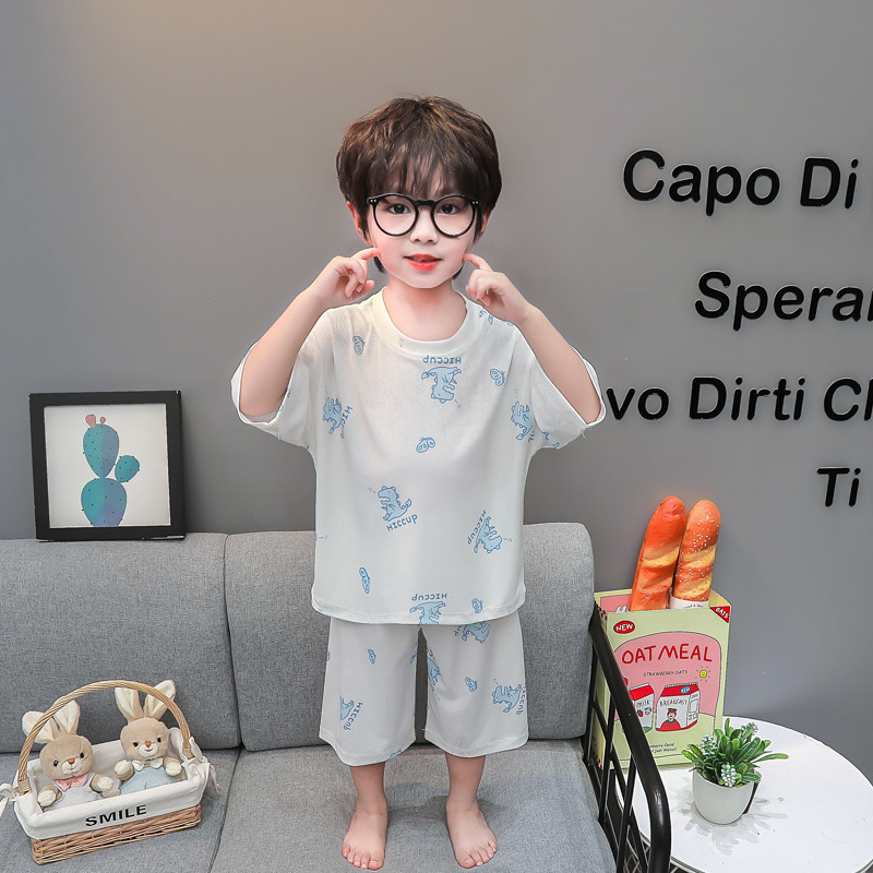 소년 얼음 실크 잠옷 여름 소년 아기 얇은 반팔 에어컨 옷 어린이 마스크 홈 의류 세트스토어 가기
