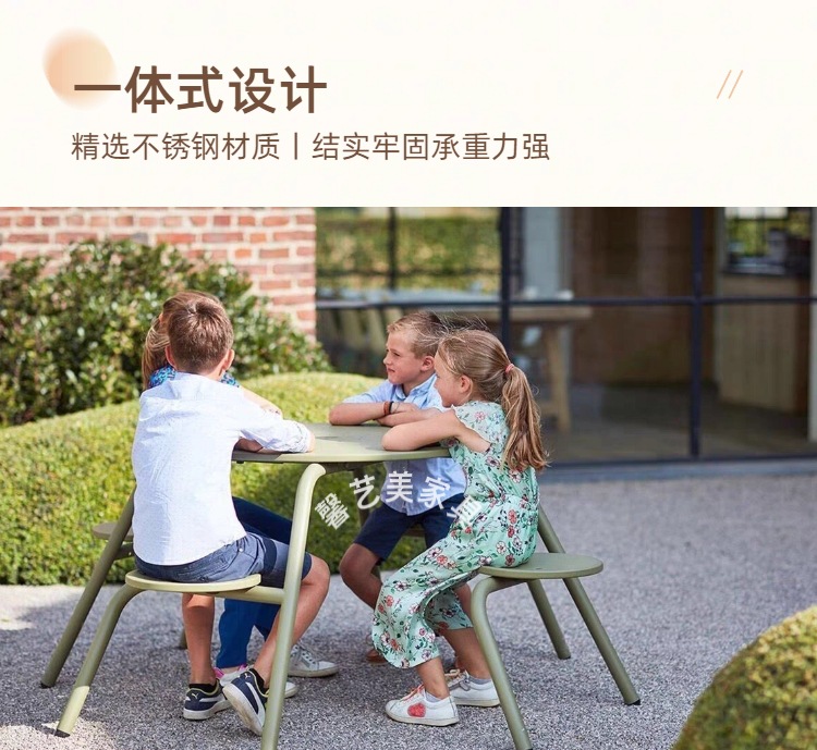 스테인레스 스틸 일체형 테이블 야외 간단한 레저 테이블과 의자 조합 안뜰 정원 카페 레스토랑 다인용 식탁