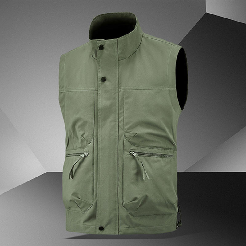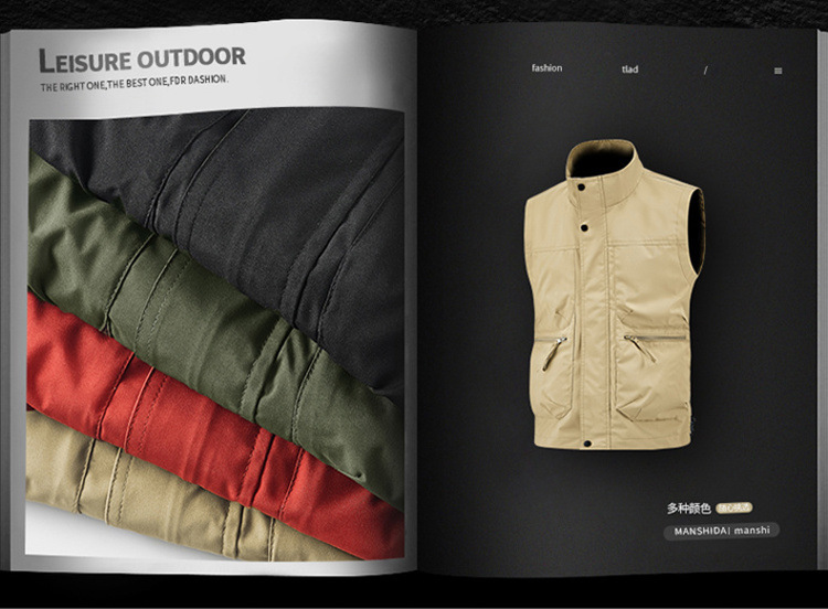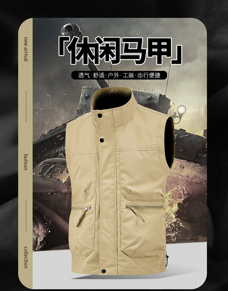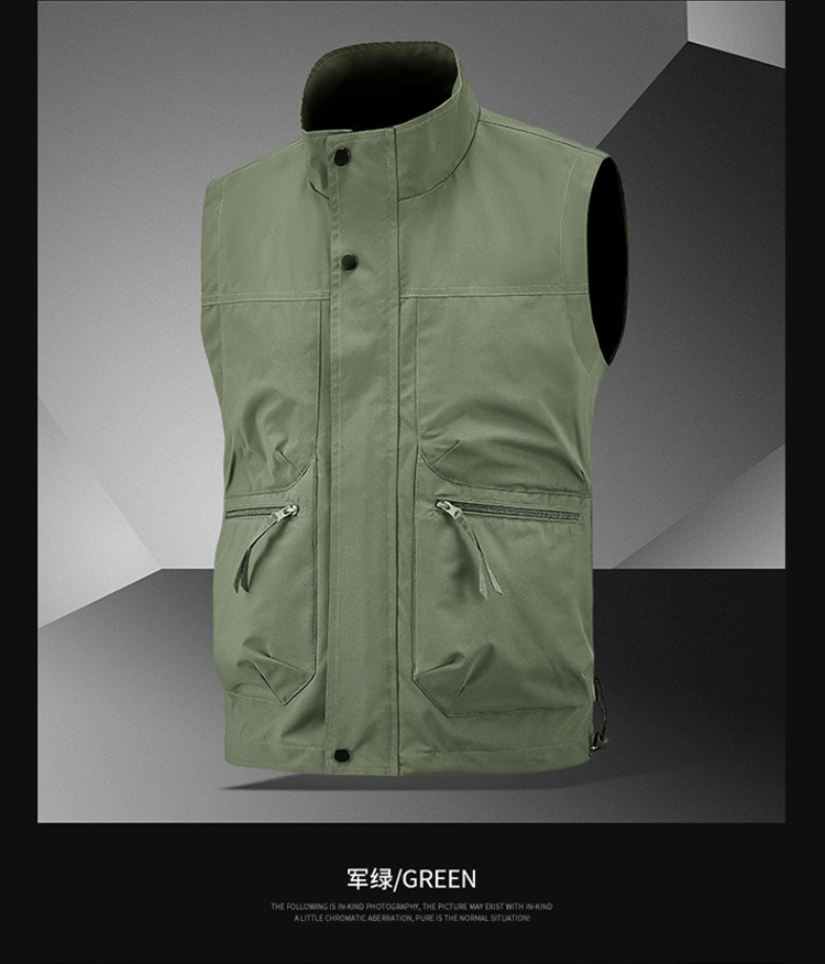 남성용 조끼 봄 가을 야외용 스탠드 칼라 작업복 낚시 등산 전술 다용도 포켓 조끼 스타일 남성 조끼