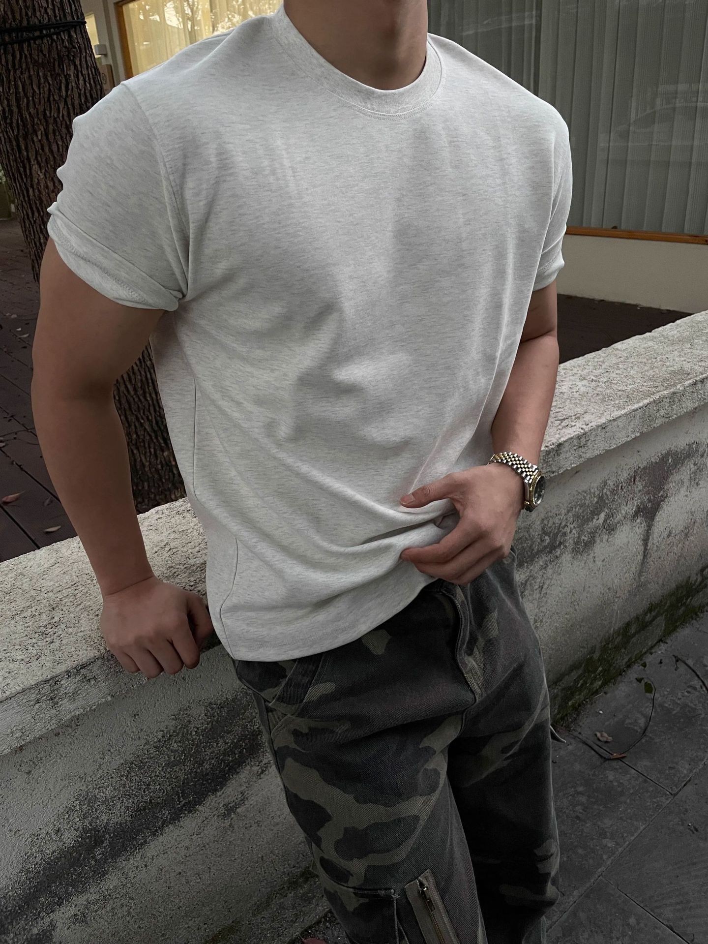 아메리칸 스타일 310g 쿨 솔로나 하프 터틀넥 솔로나 피트니스 스포츠 티셔츠 남성용 오른쪽 어깨 솔리드 컬러 라운드 넥 반팔스토어 가기