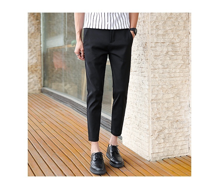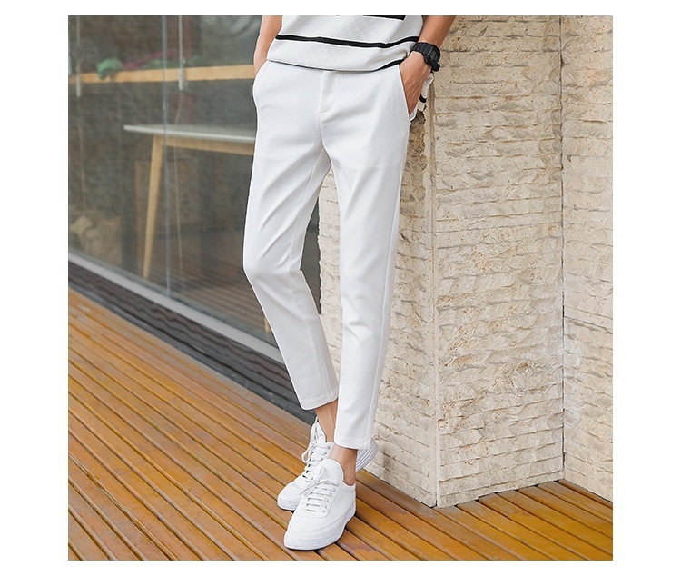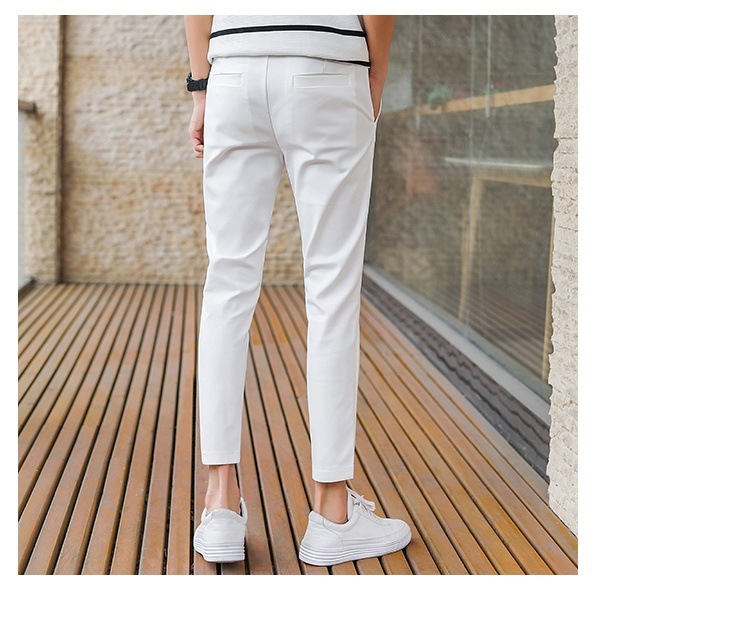 남성용 바지 화이트 한국 스타일 트렌디 9부 팬츠 남성 캐주얼 팬츠 슬림핏 팬츠 남성용 9부 다용도 바지 트렌디
