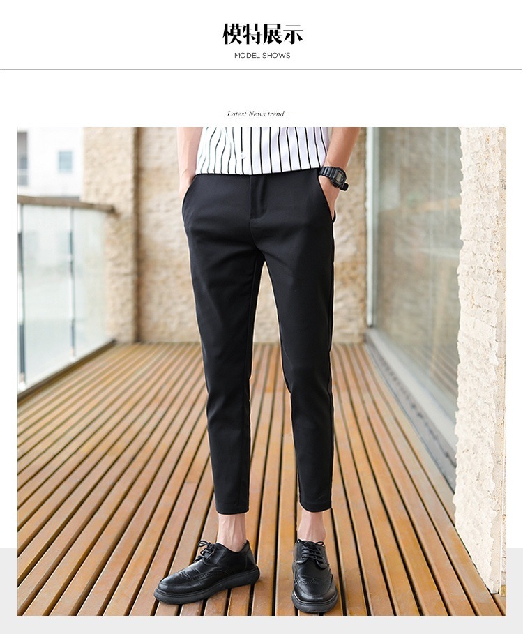 남성용 바지 화이트 한국 스타일 트렌디 9부 팬츠 남성 캐주얼 팬츠 슬림핏 팬츠 남성용 9부 다용도 바지 트렌디스토어 가기