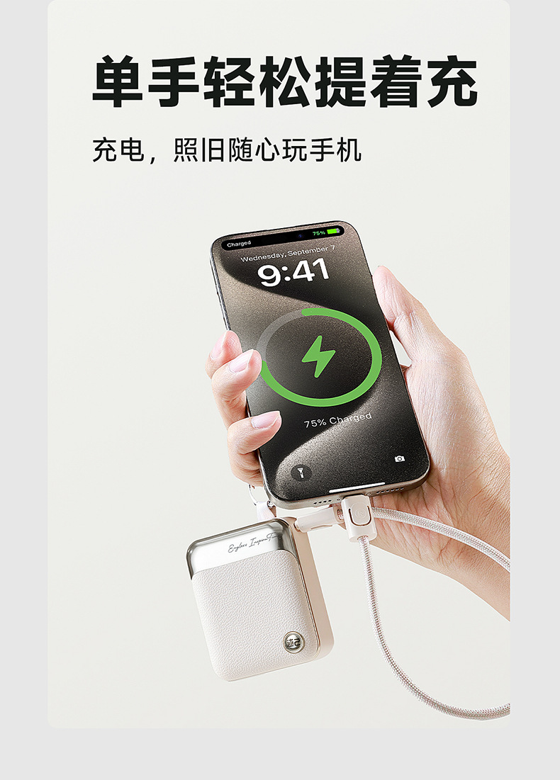 Shujili 가볍고 작은 사각형 전원 은행 10000mAh 22.5w 고속 충전에는 케이블이 함께 제공됩니다. 간단하고 휴대 가능한 모바일 전원 공급 장치스토어 가기
