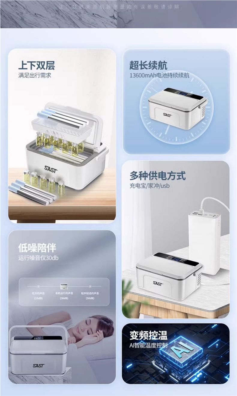SAST 자동차 냉장고 인슐린 냉장 상자 휴대용 소형 냉동 자동차 홈 이중 목적 12v24v 온도 조절기 미니