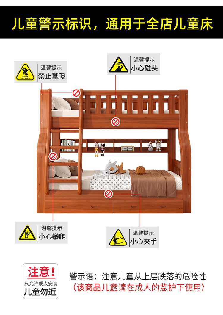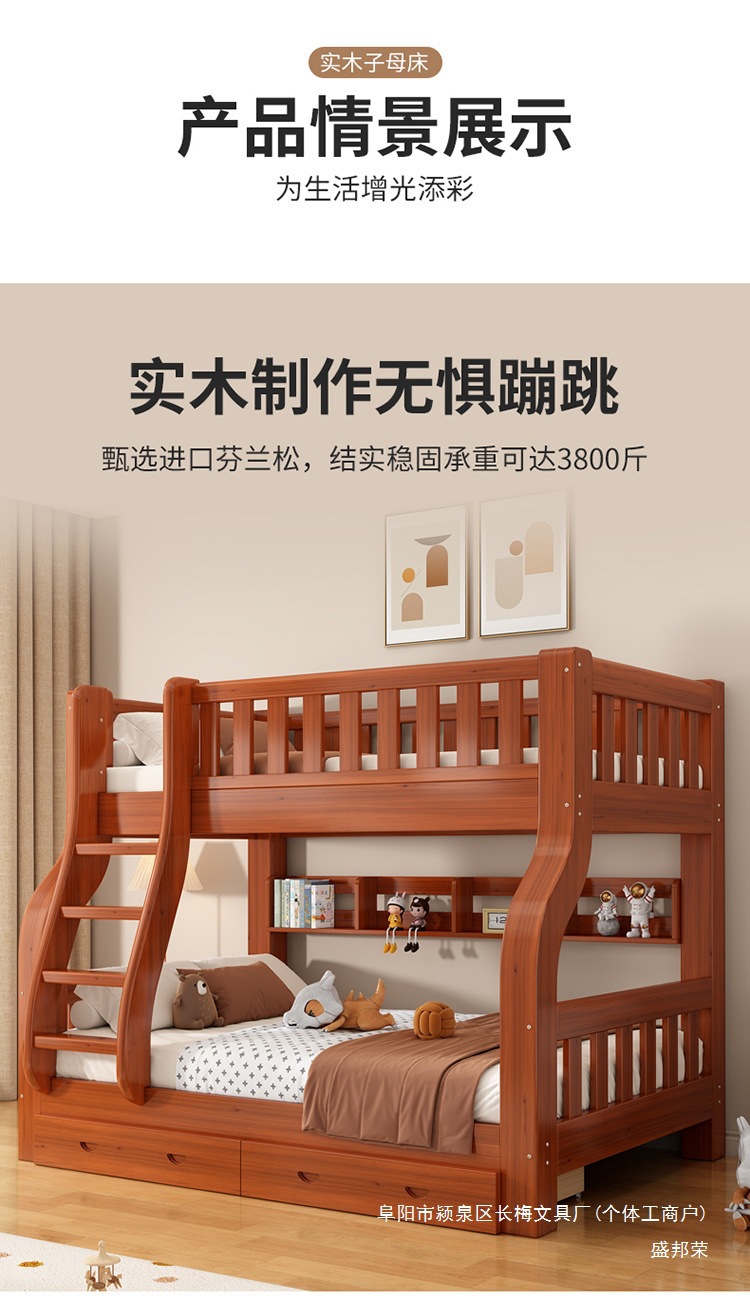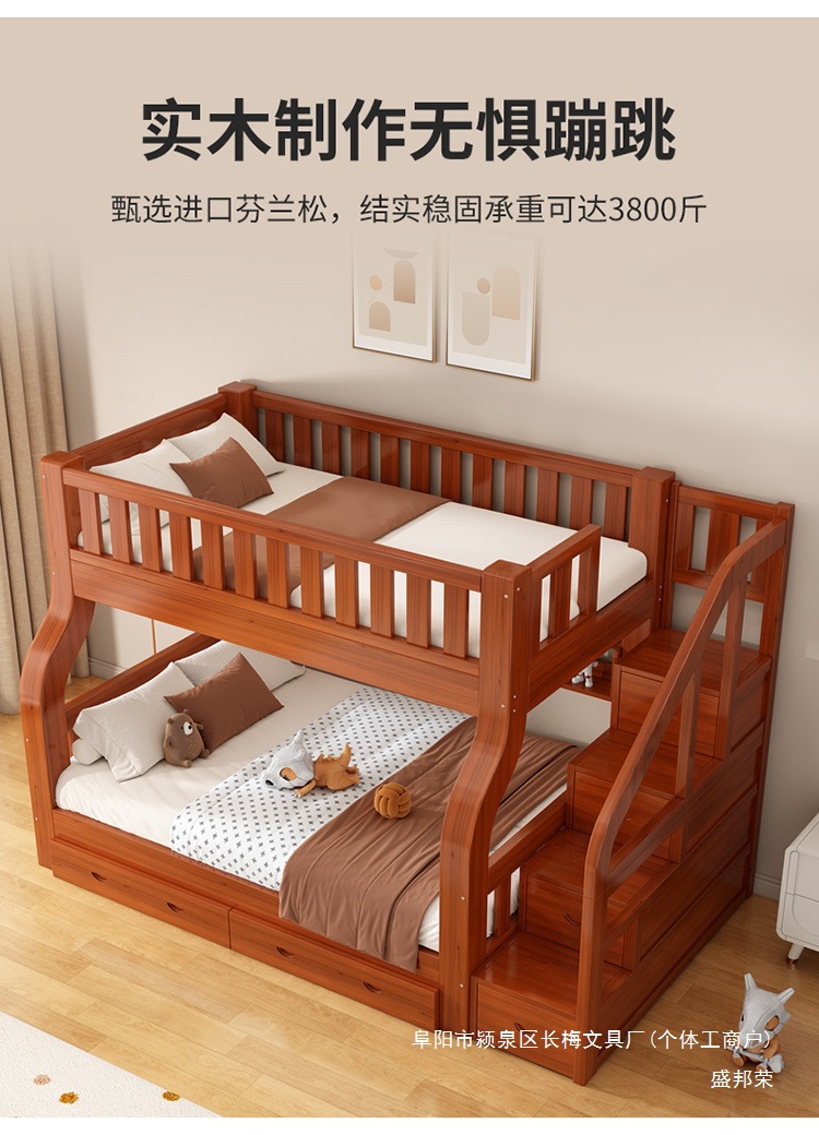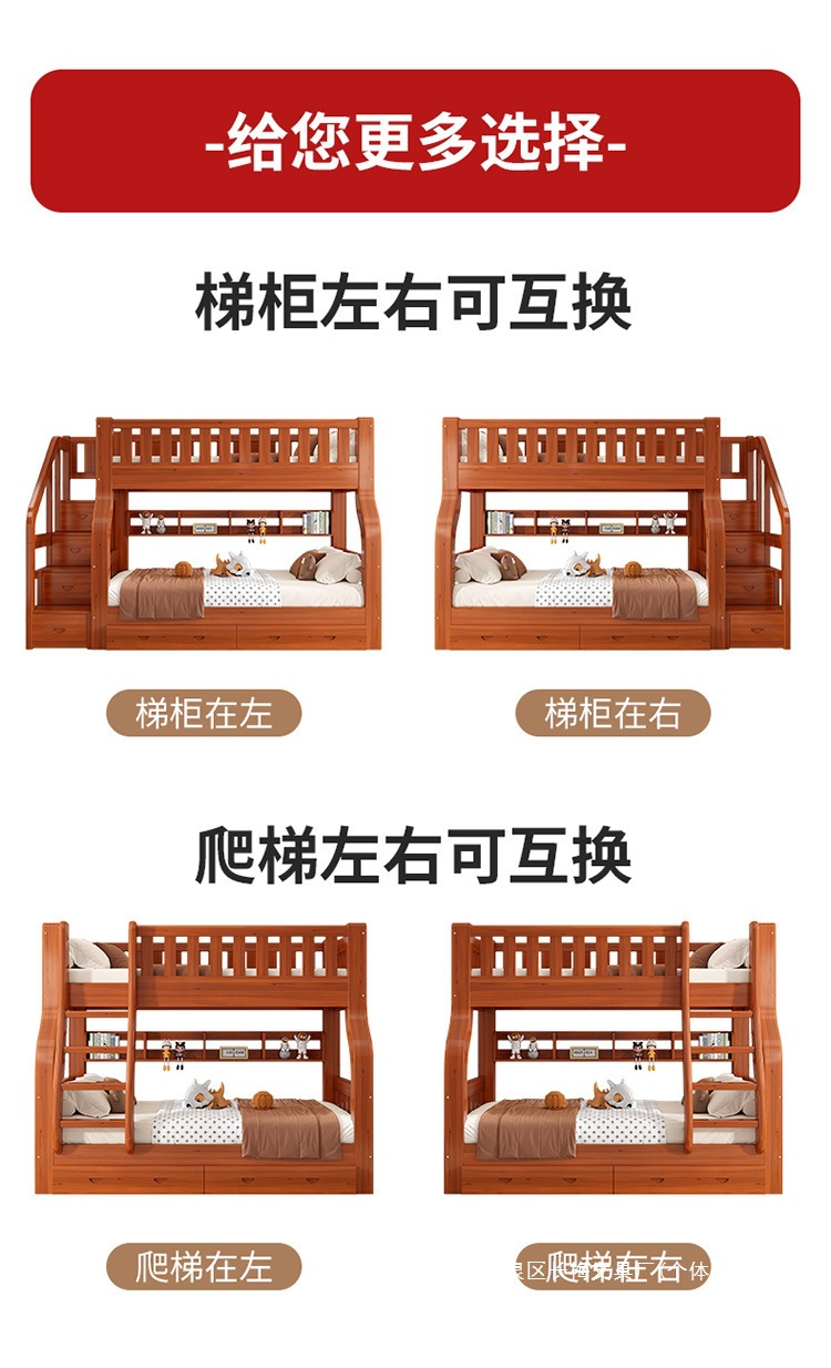 원목 이층침대, 높낮이 이층침대, 이층침대, 소형 다기능 조합, 어린이 이층침대