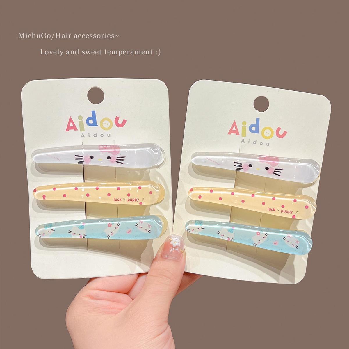 만화 귀여운 폴카 도트 새끼 고양이 여성을위한 원활한 머리핀 사이드 앞머리 메이크업 클립 포지셔닝 Duckbill 클립 머리핀