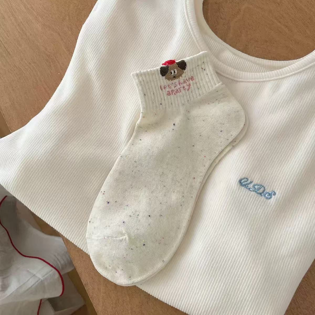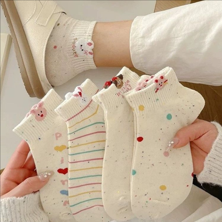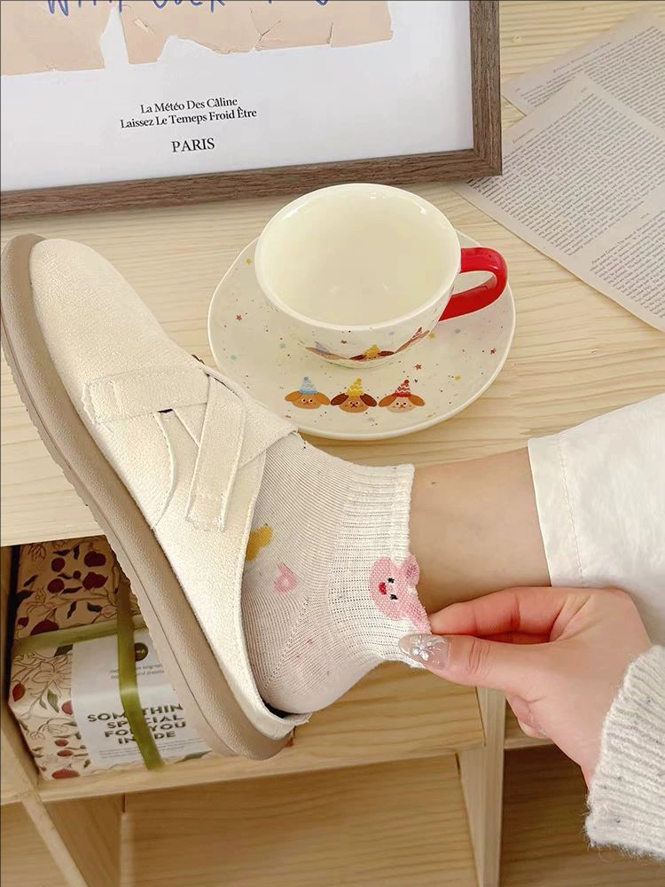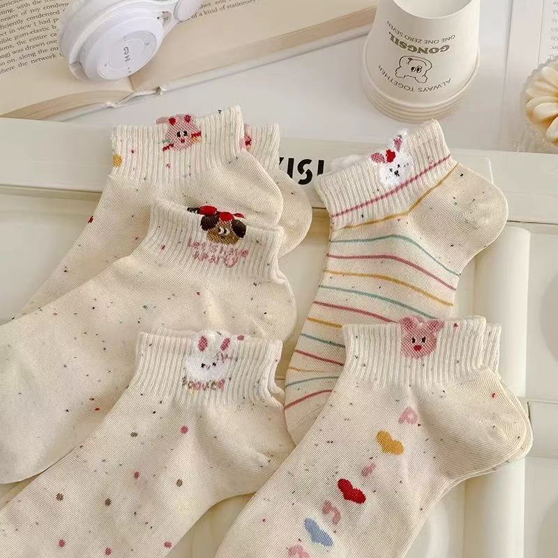 여성용 만화 양말, 봄 여름 트렌디한 다용도 귀여운 아이디어 원사 토끼 짧은 튜브 로우탑 얕은 입 보트 양말스토어 가기