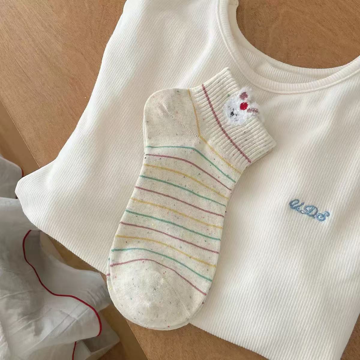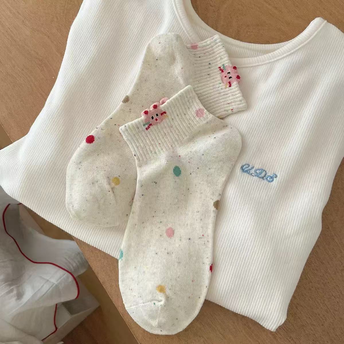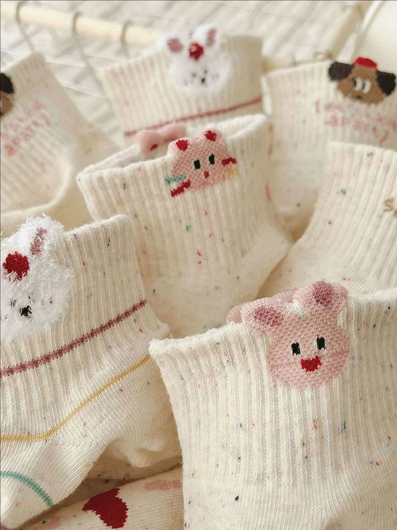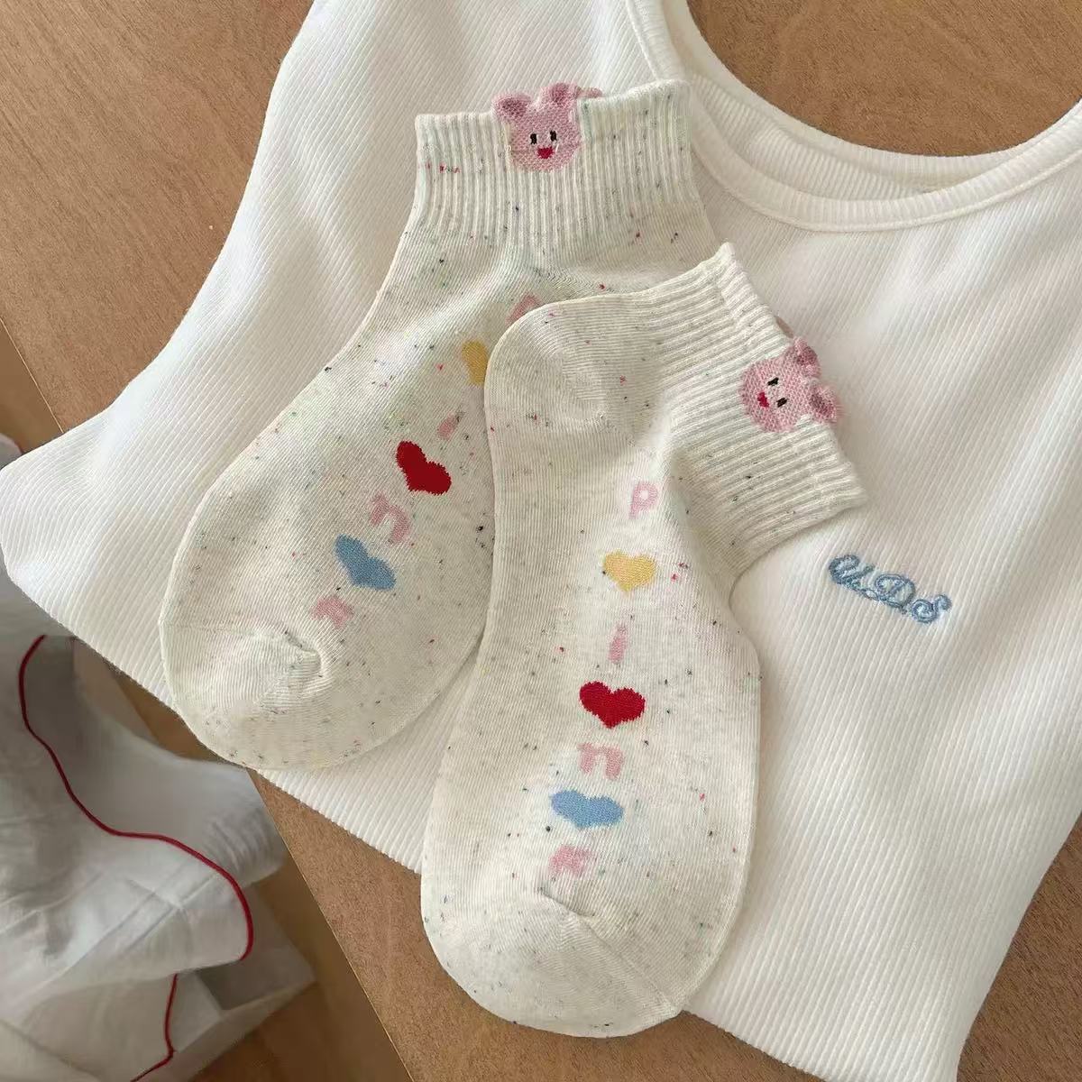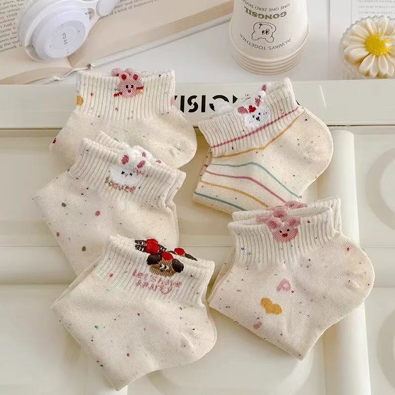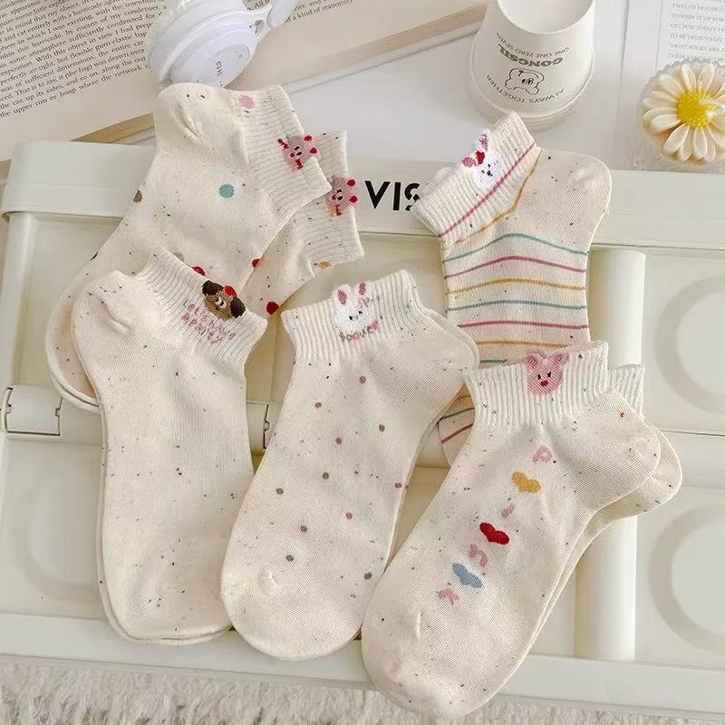 여성용 만화 양말, 봄 여름 트렌디한 다용도 귀여운 아이디어 원사 토끼 짧은 튜브 로우탑 얕은 입 보트 양말