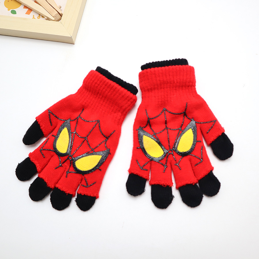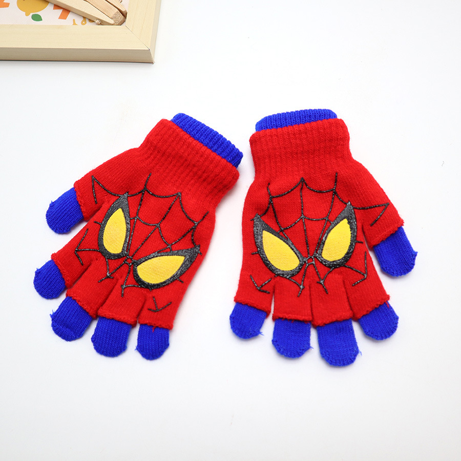 스파이더 맨 장갑 소년 겨울 인쇄 만화 따뜻한 손가락 소년 다섯 손가락 야외 손 보호대 애니메이션 장갑