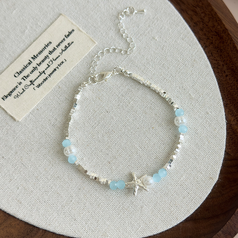 리조트 스타일 블루 크리스탈 비즈 실버 불가사리 팔찌 목걸이 하이 엔드 라이트 럭셔리 핸드 쥬얼리 쇄골 체인 액세서리