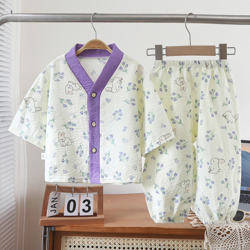 아동용 잠옷, 가정복, 여름용 유아복, 남아 및 여아 속옷, 가디건, 중대형 아동용 얇은 캐주얼 에어컨 의류스토어 가기