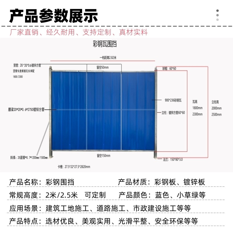 컬러 강철 울타리 건설 현장 건설 임시 격리 울타리 프로젝트 안전 보호 잔디 컬러 강철 울타리 철판 울타리스토어 가기