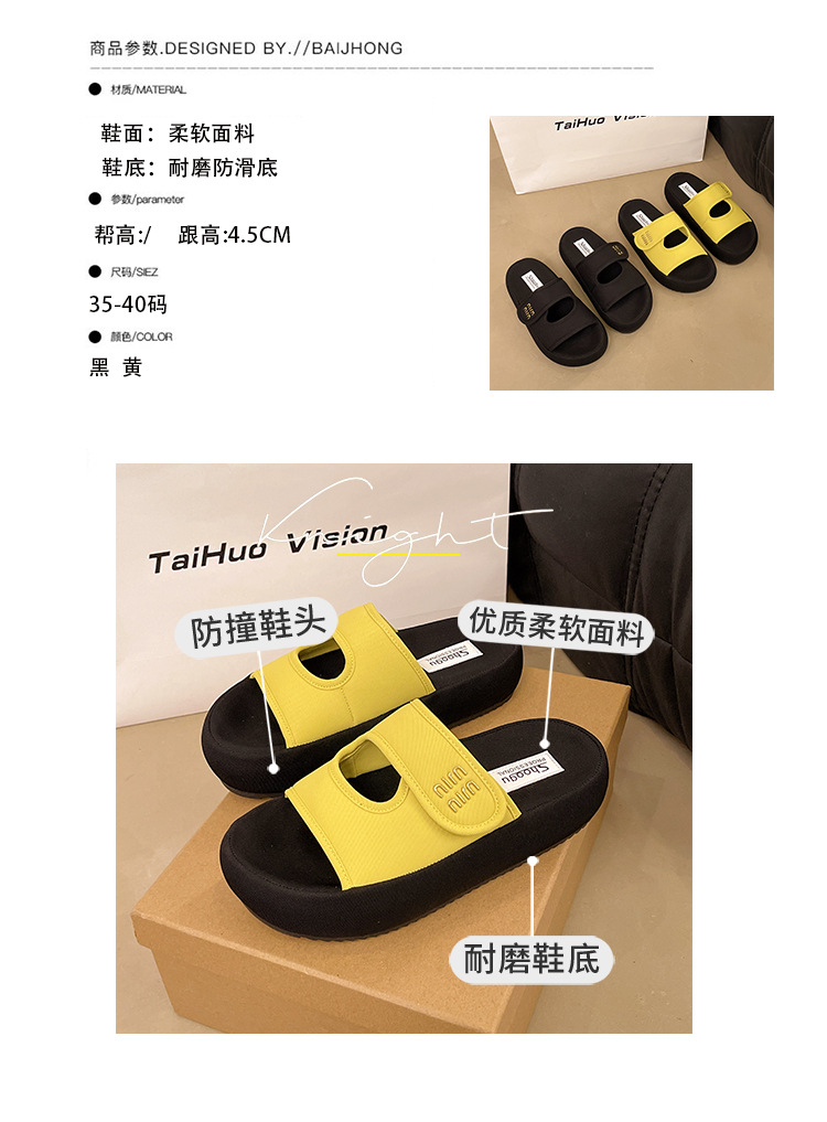 35-42 사이즈 대형 여성화 두꺼운 밑창 벨크로 샌들 여름 아우터웨어 슬리밍 슬리퍼 캐주얼 샌들
