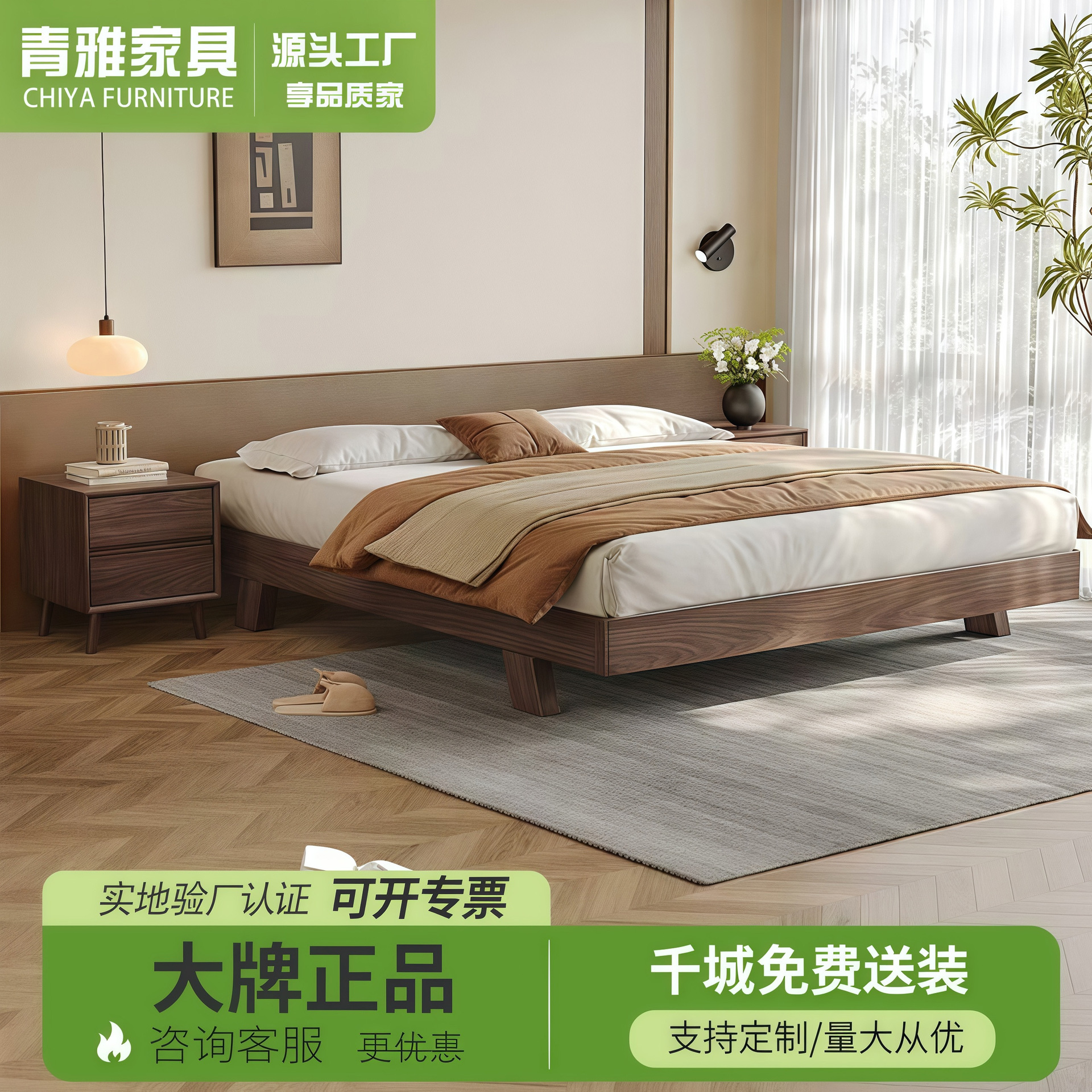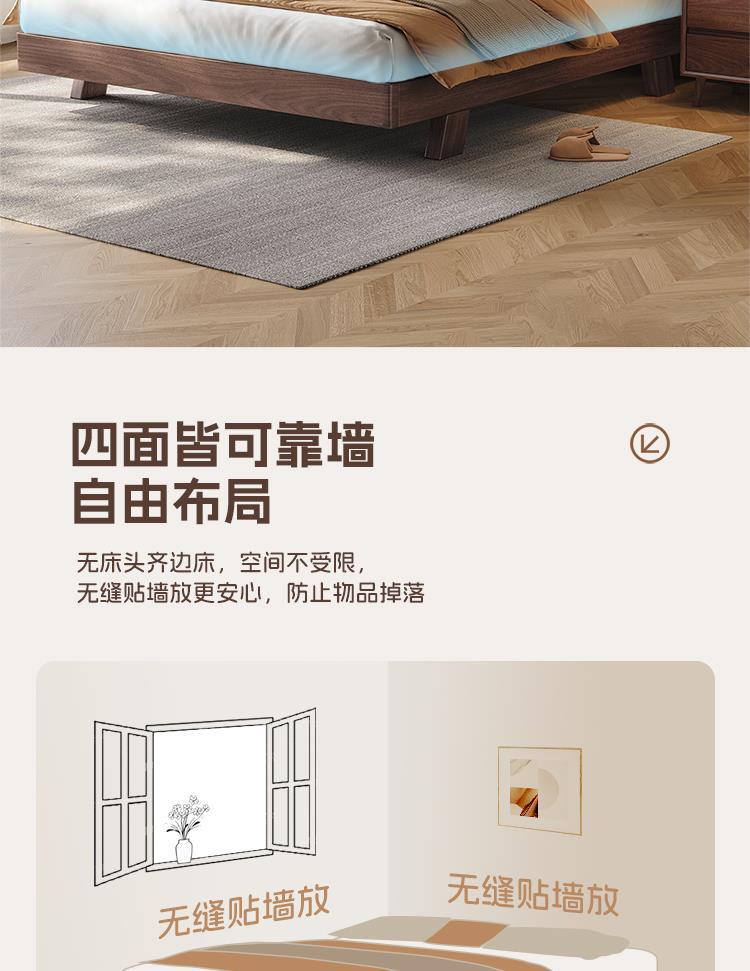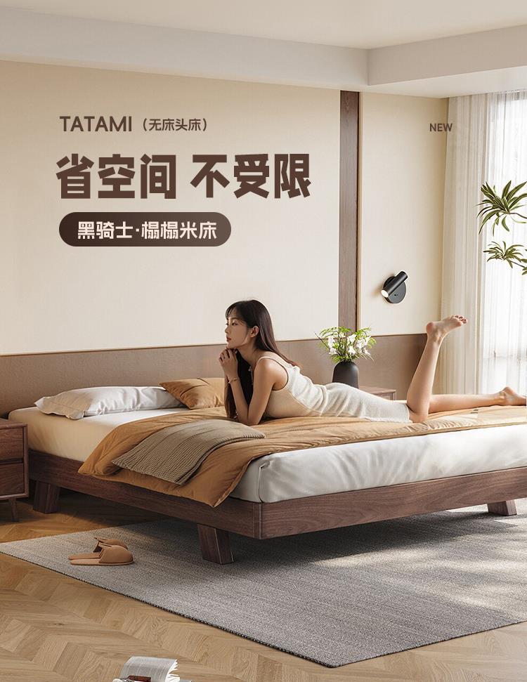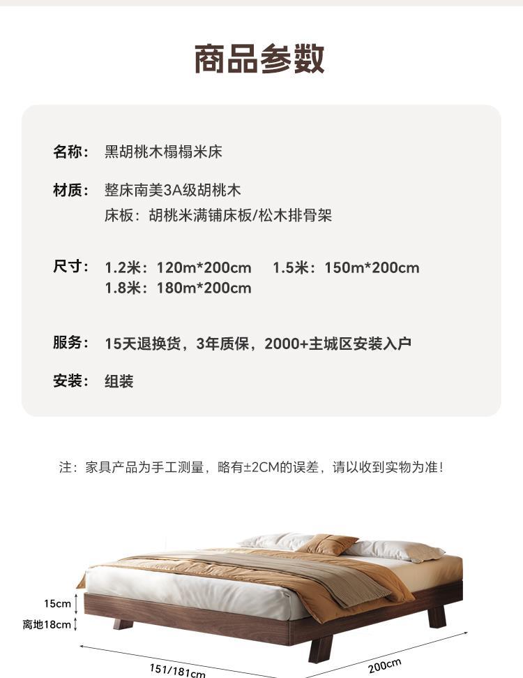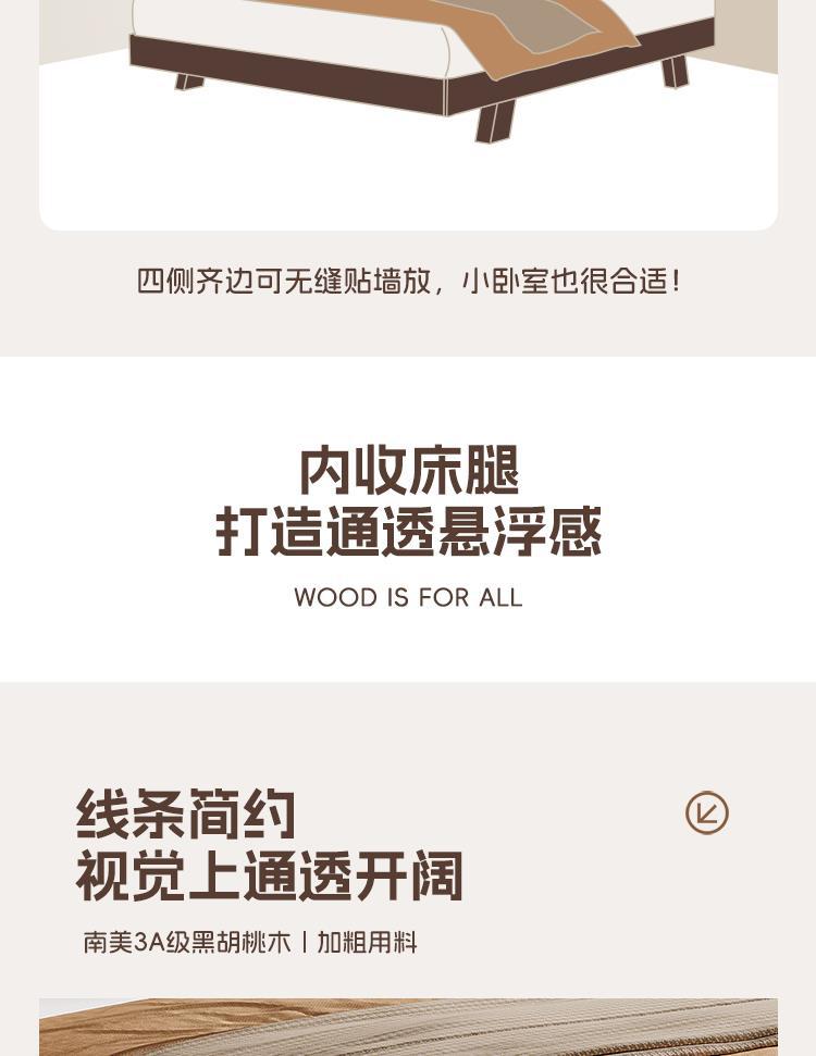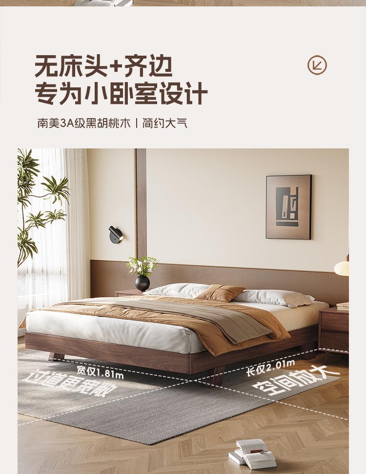원목 블랙 호두 싱글 침대 소형 아파트 1.2m 마스터 침실 대형 침대 1.8m 심플 모던 침대 없음 2m스토어 가기