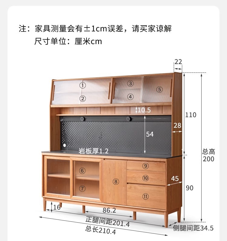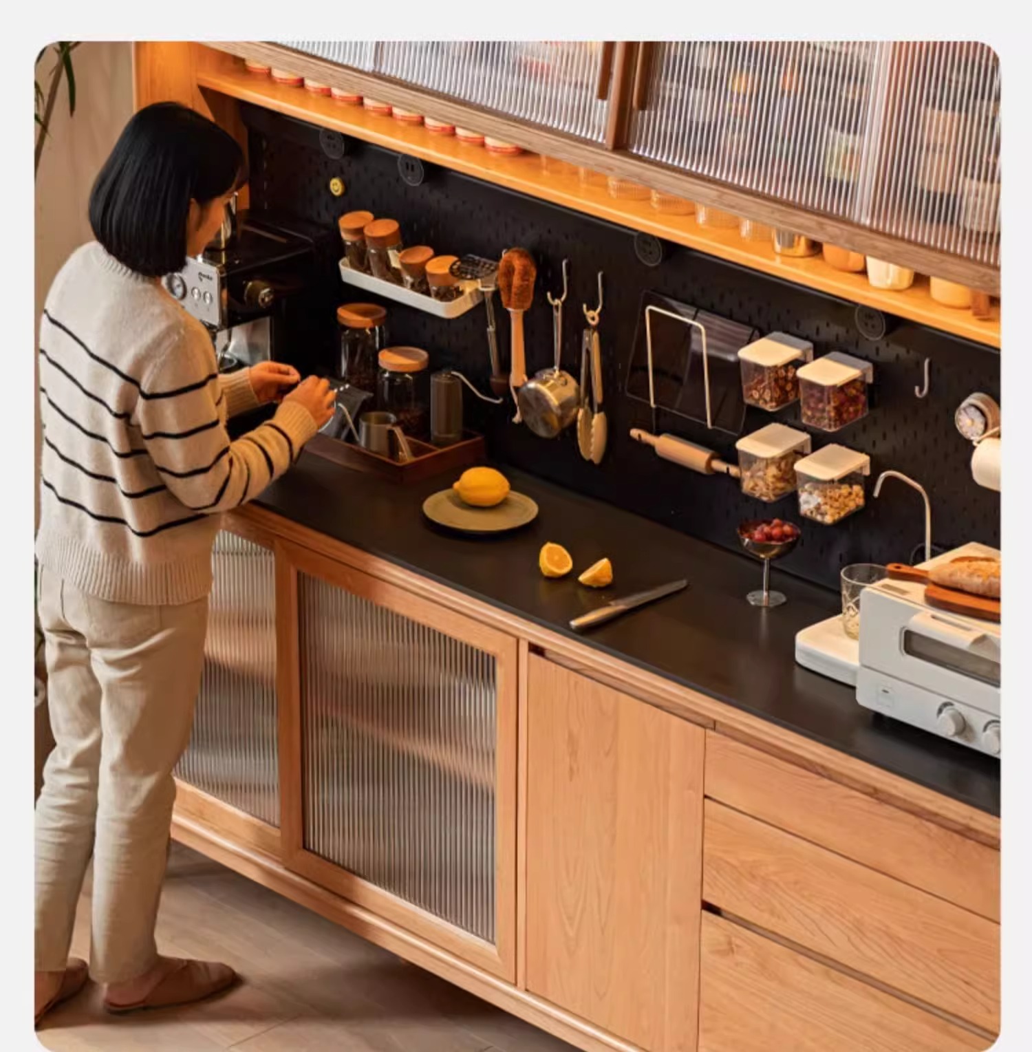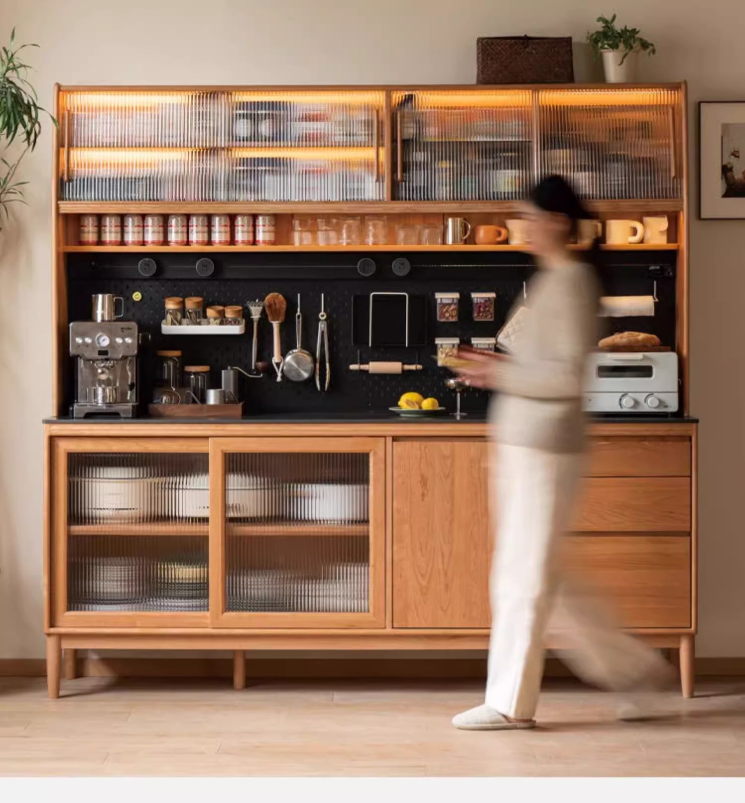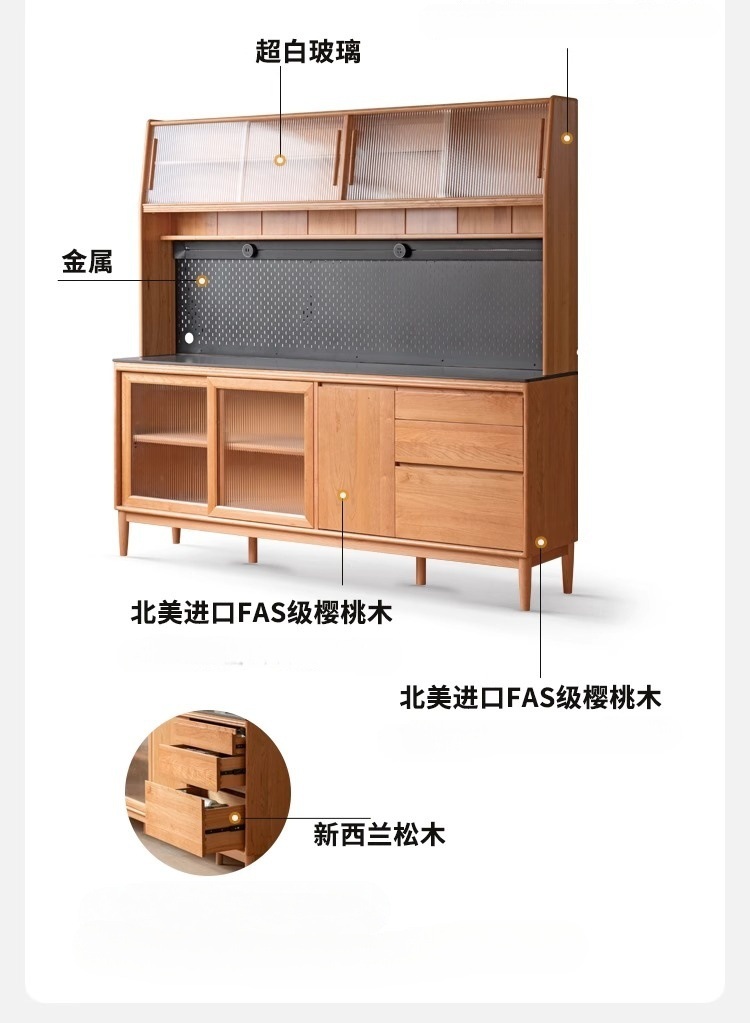 단단한 나무 바위 석판 찬장 통합 높은 캐비닛 레스토랑 홈 체리 나무 캐비닛 대용량 보관 캐비닛