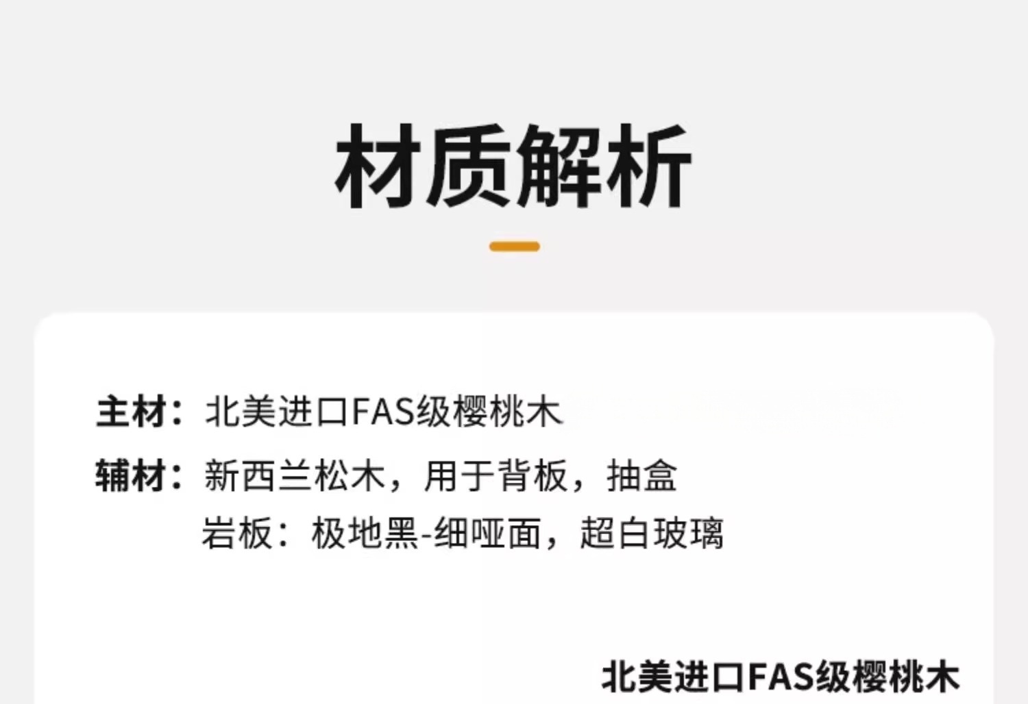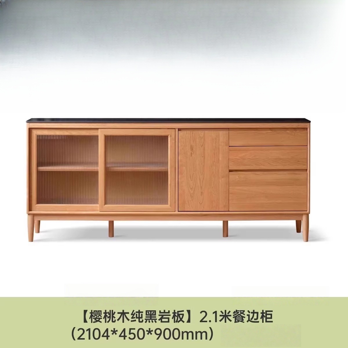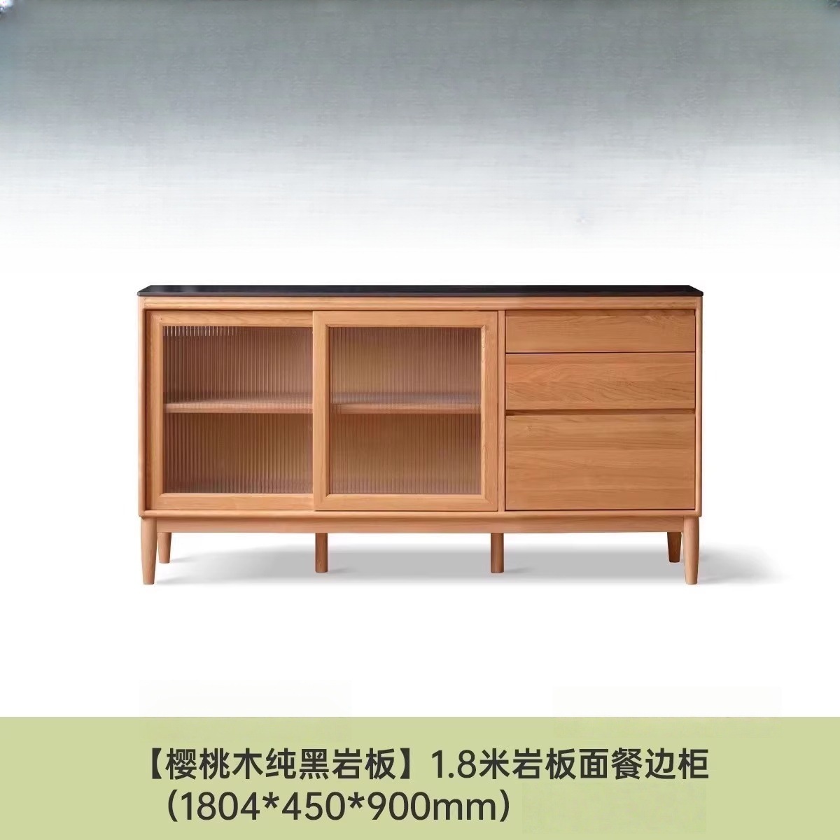 • 벚나무 - 1.8m 슬레이트 식탁 옆 캐비닛 전체 캐비닛(무료 전기 트랙 + 소켓)