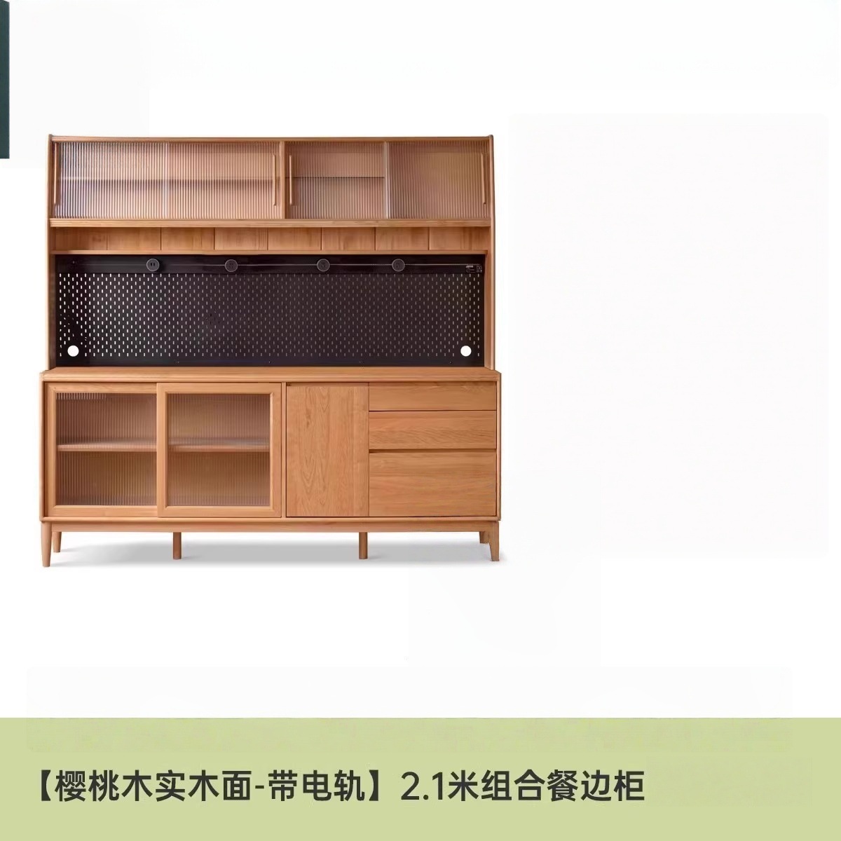 • 벚나무 - 2.1m 슬레이트 식탁 옆 캐비닛 전체 캐비닛(무료 전기 트랙 + 소켓)