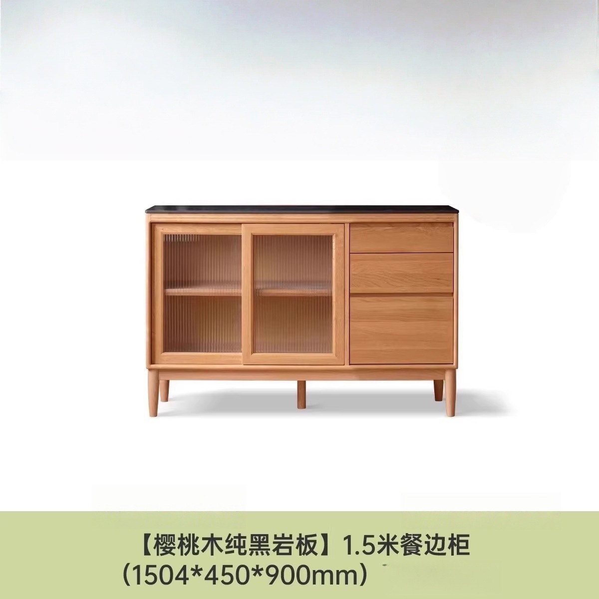 • 벚나무 - 1.5m 슬레이트 식탁 옆 캐비닛 전체 캐비닛(무료 전기 트랙 + 소켓)