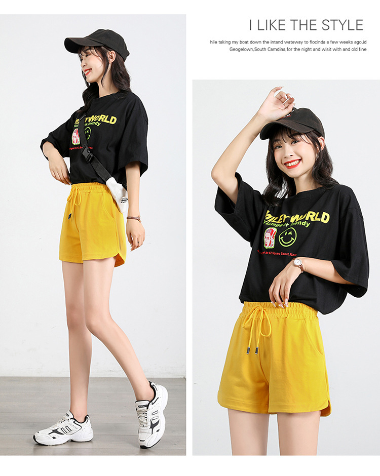 Cec 와이드 레그 반바지 여성 여름 2025 루즈한 한국 스타일 학생 하이 웨이스트 슬림 캐주얼 스포츠 핫 팬츠 인 트렌드스토어 가기