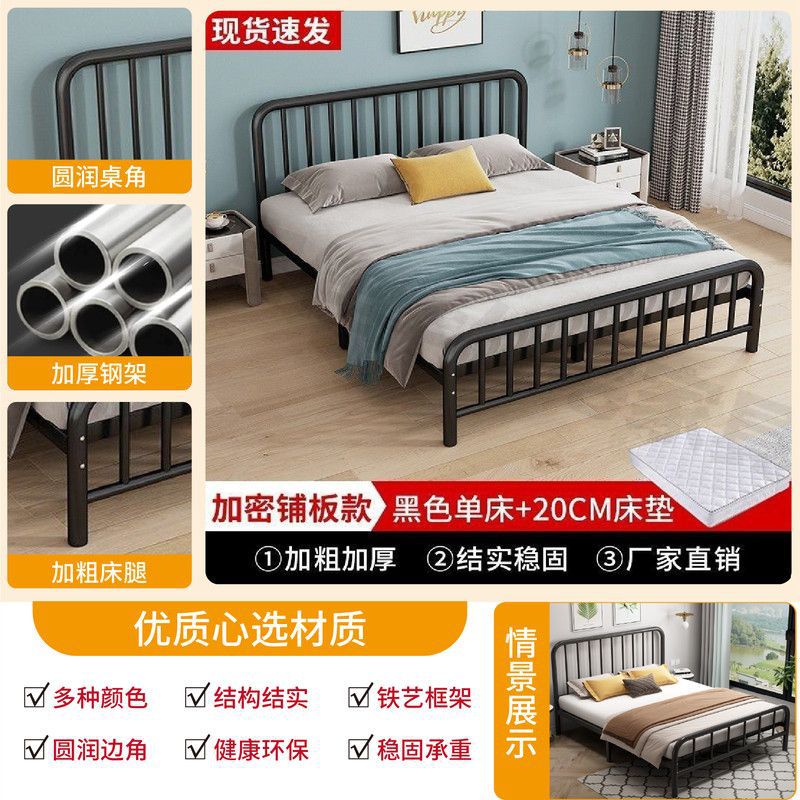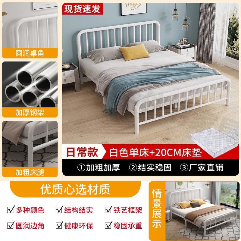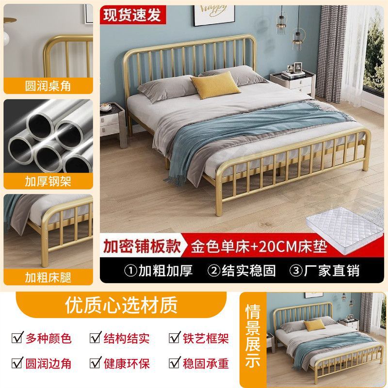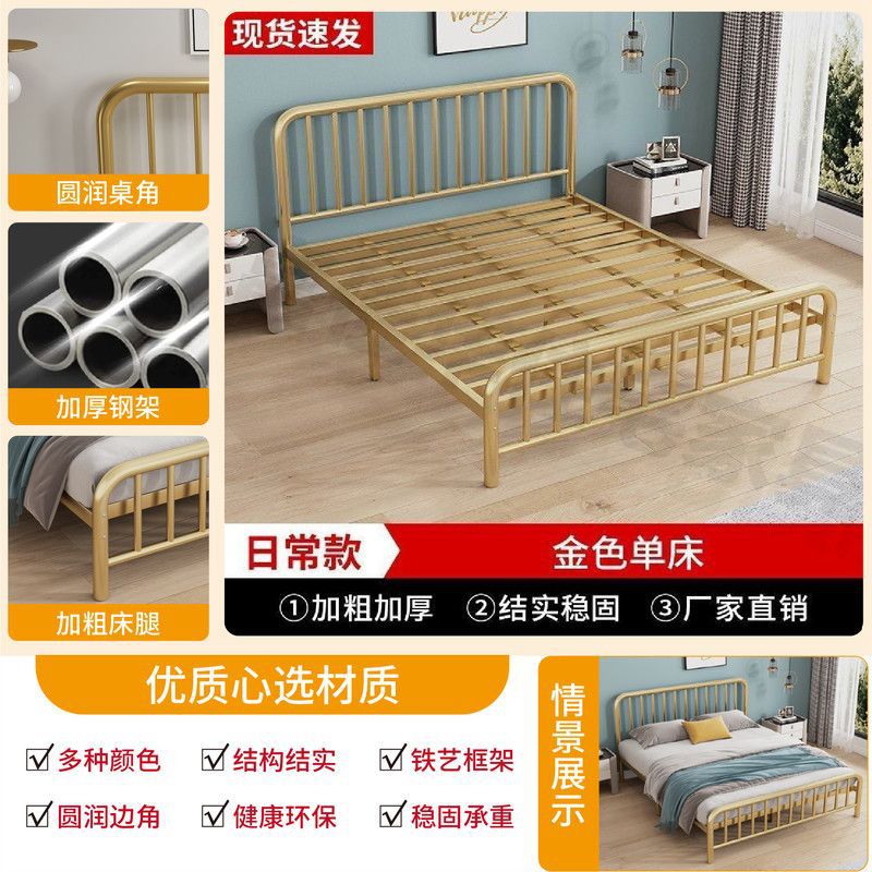 현대적인 간단한 철제 침대 인터넷 연예인 ins 싱글 및 더블 두꺼운 두꺼운 아파트 임대 철제 프레임 침대 도매스토어 가기