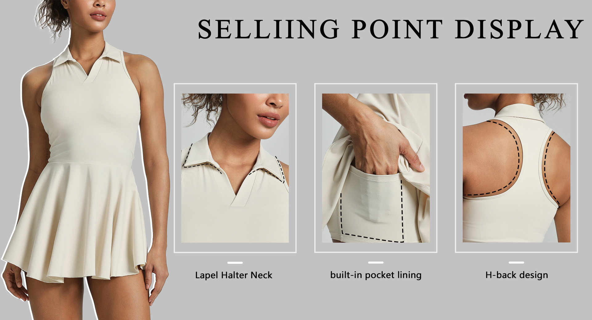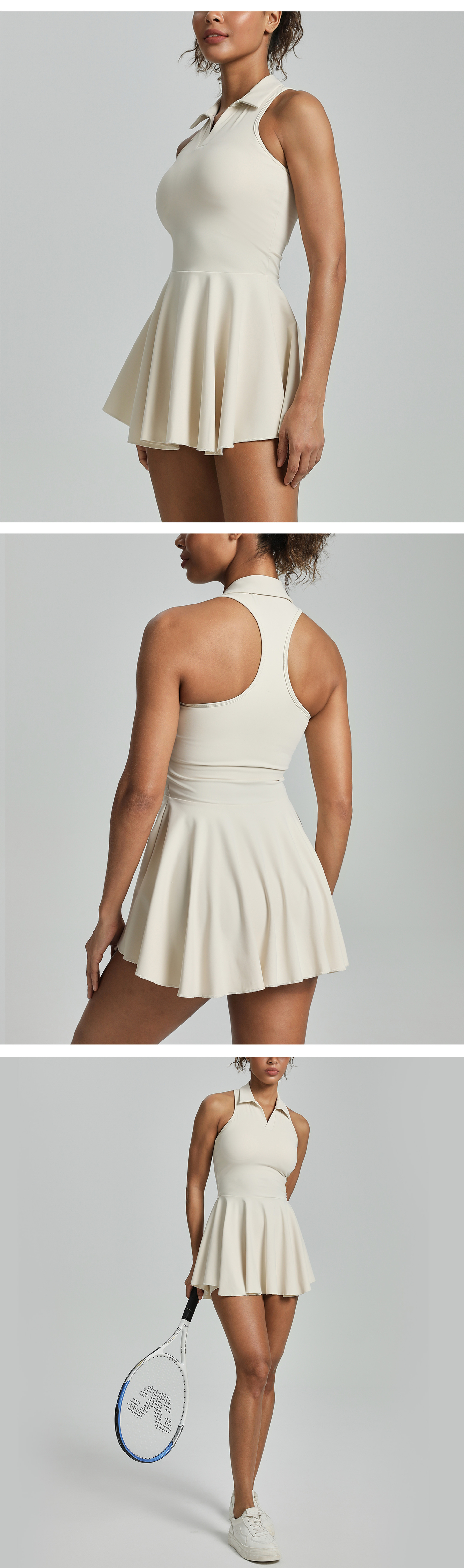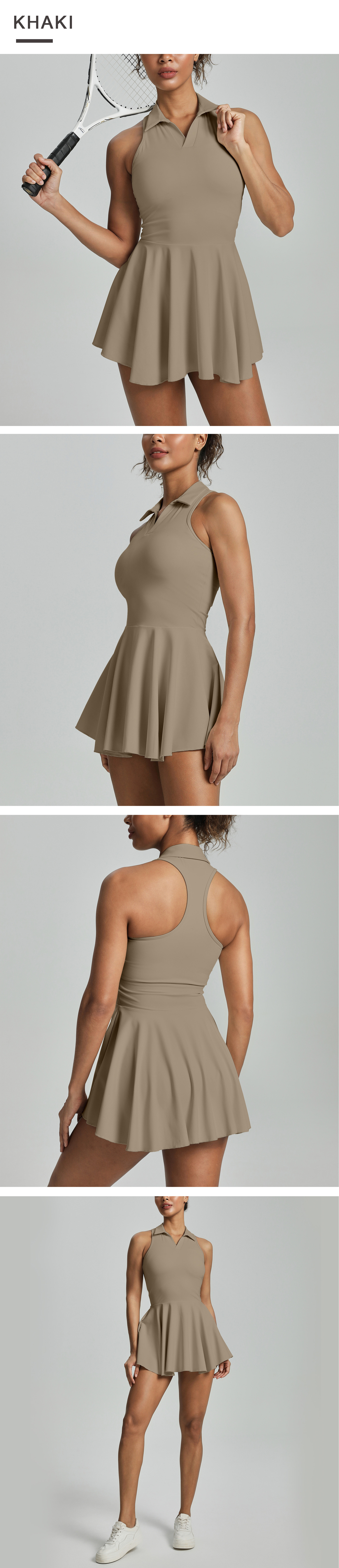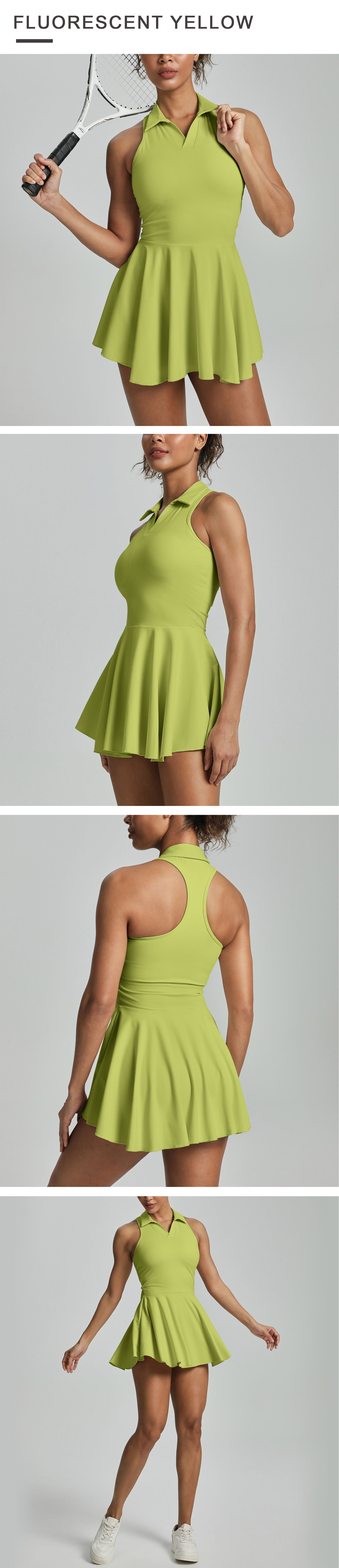 유럽과 미국의 라펠 홀터넥 스포츠 드레스 여성 민소매 허리 테니스웨어 골프 캐주얼 폴로 스커트 슈트스토어 가기