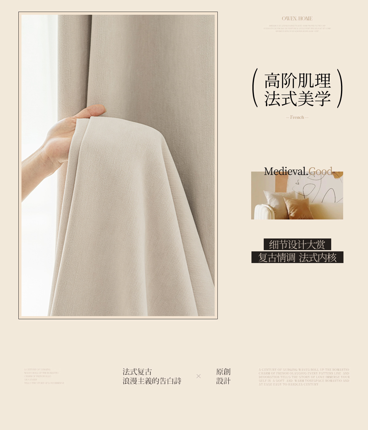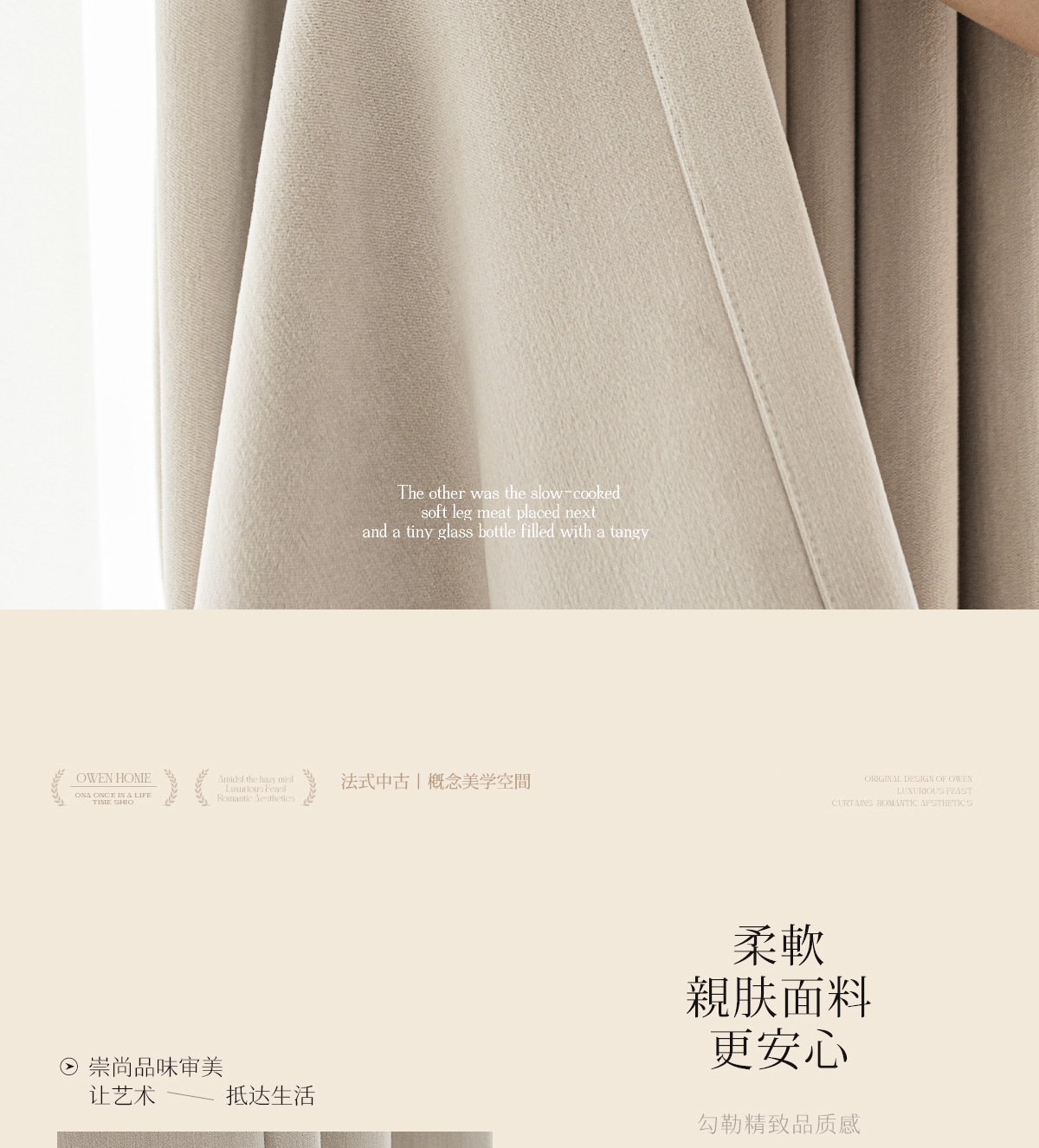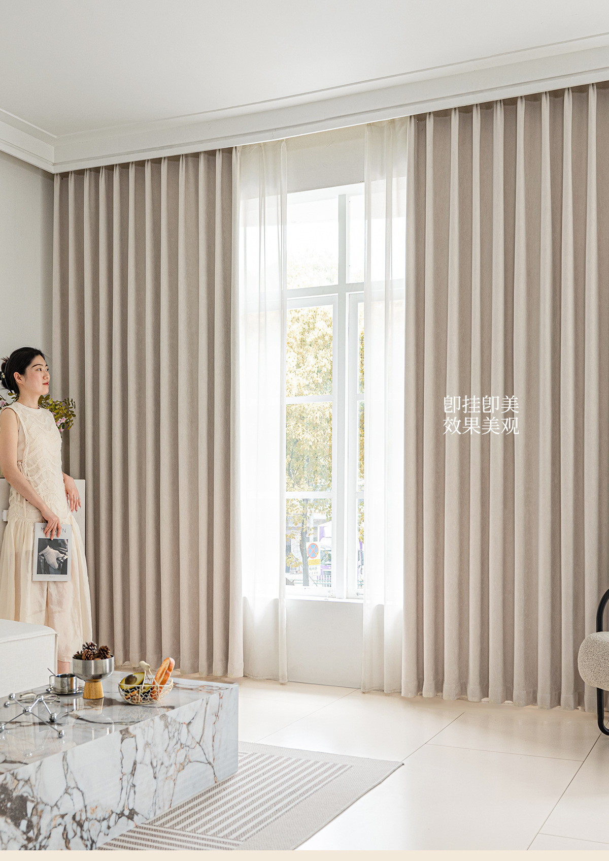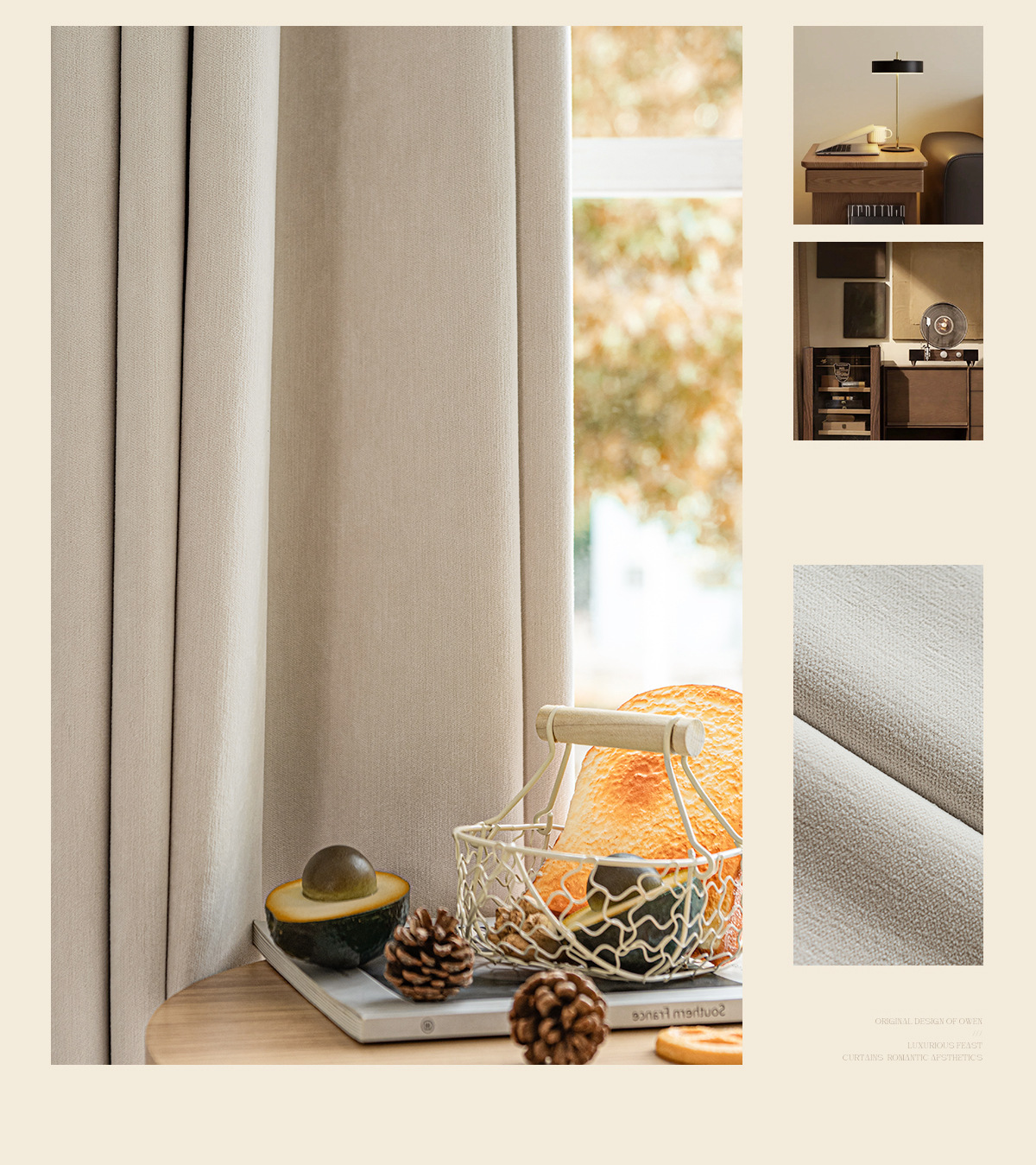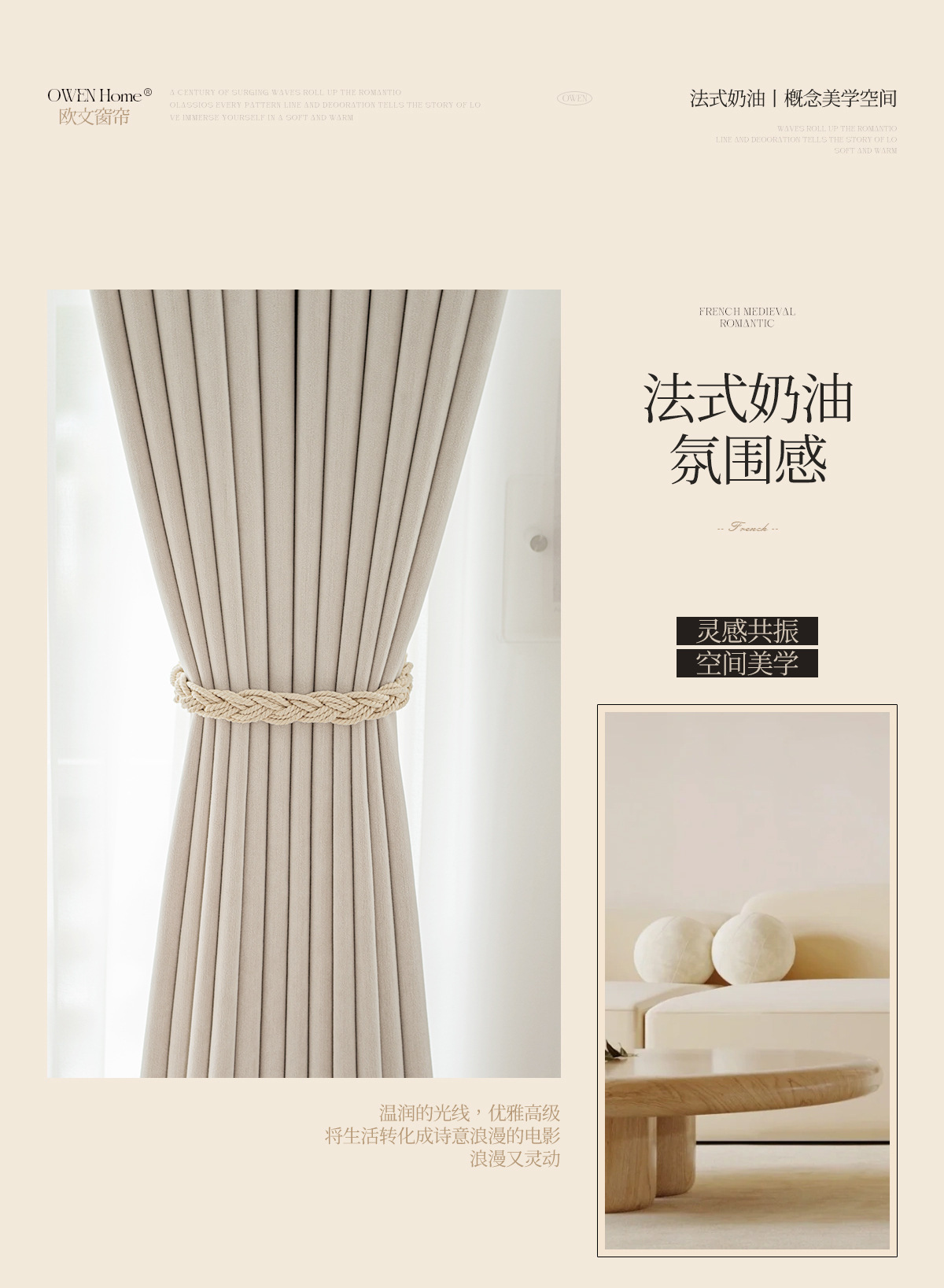 새로운 캐시미어 양면 셔닐 커튼, 현대적이고 단순한 크림 스타일, 거실, 침실, 발코니, 강력한 차광 및 고급 감각
