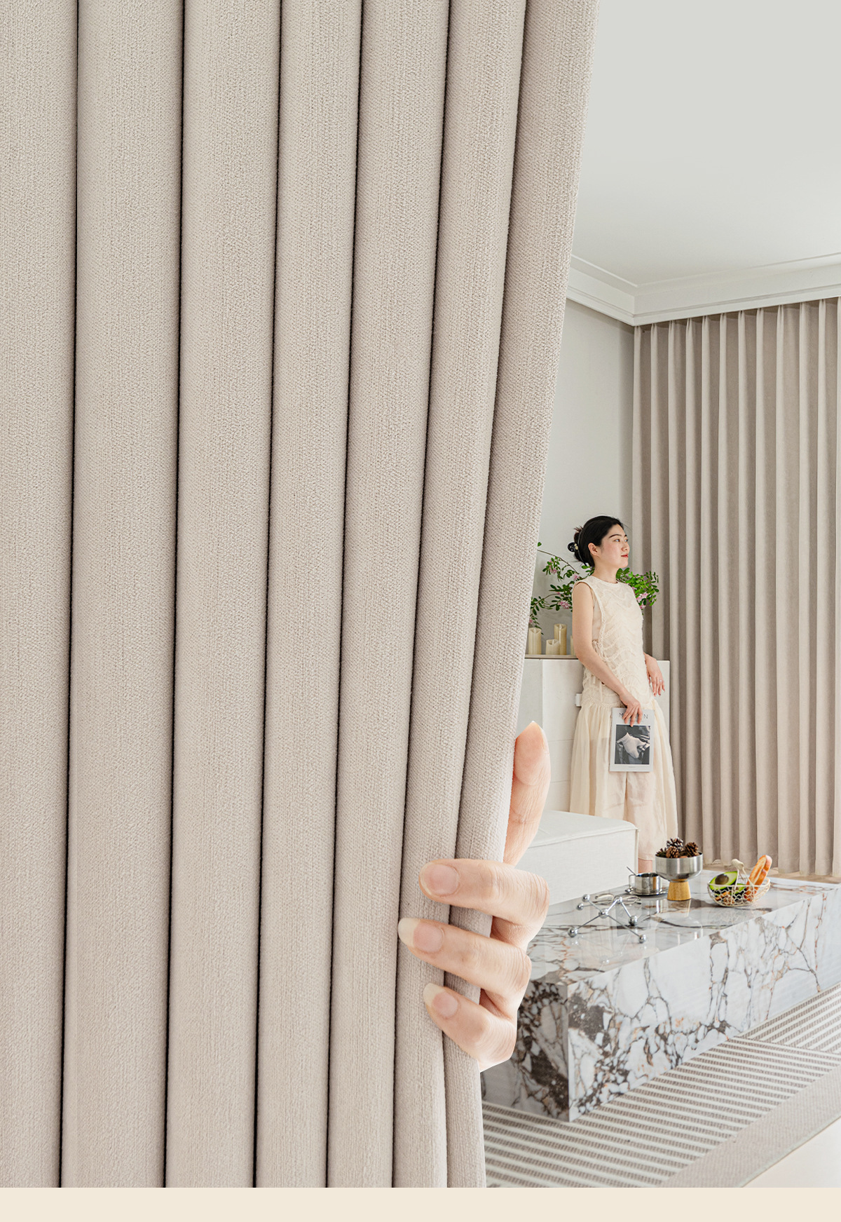새로운 캐시미어 양면 셔닐 커튼, 현대적이고 단순한 크림 스타일, 거실, 침실, 발코니, 강력한 차광 및 고급 감각스토어 가기