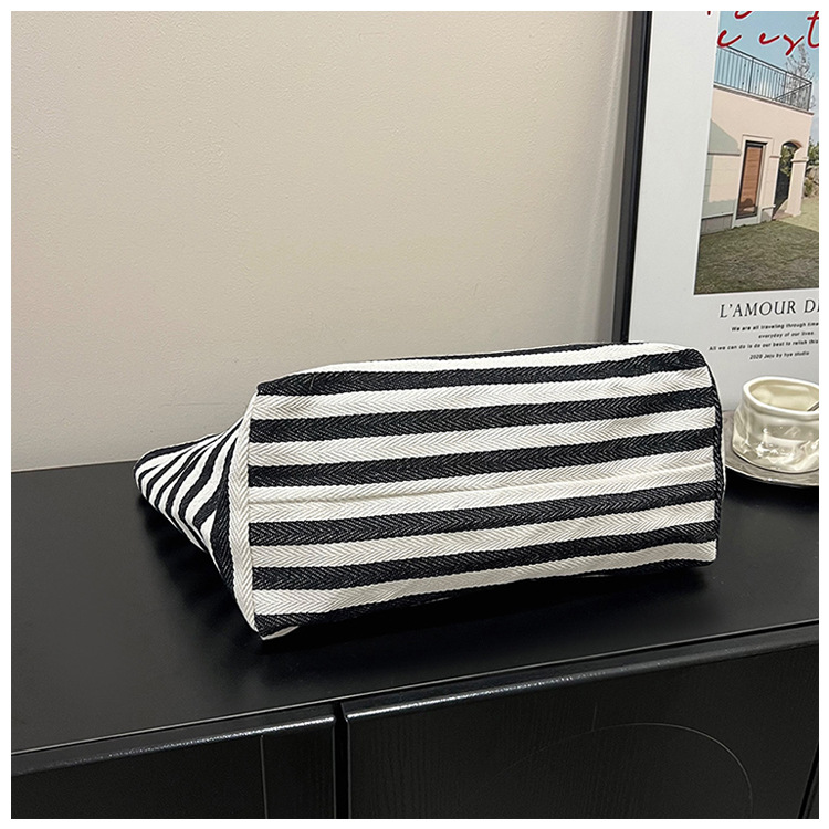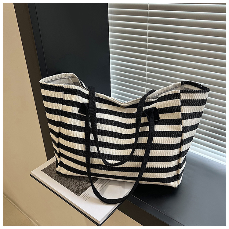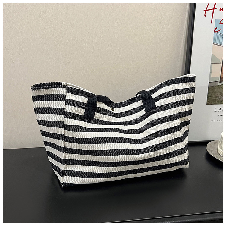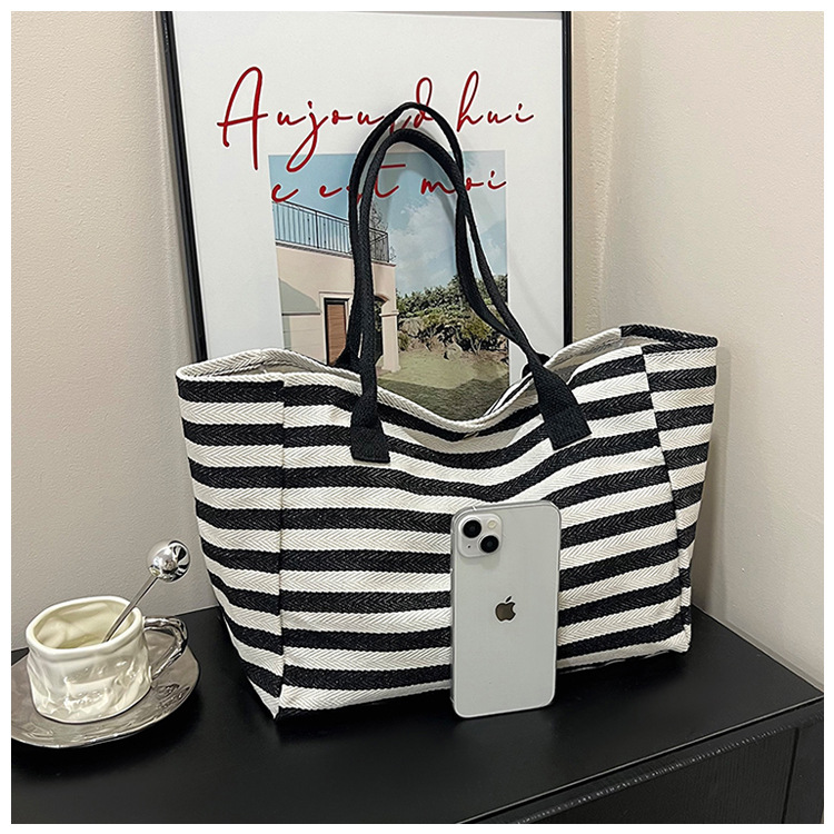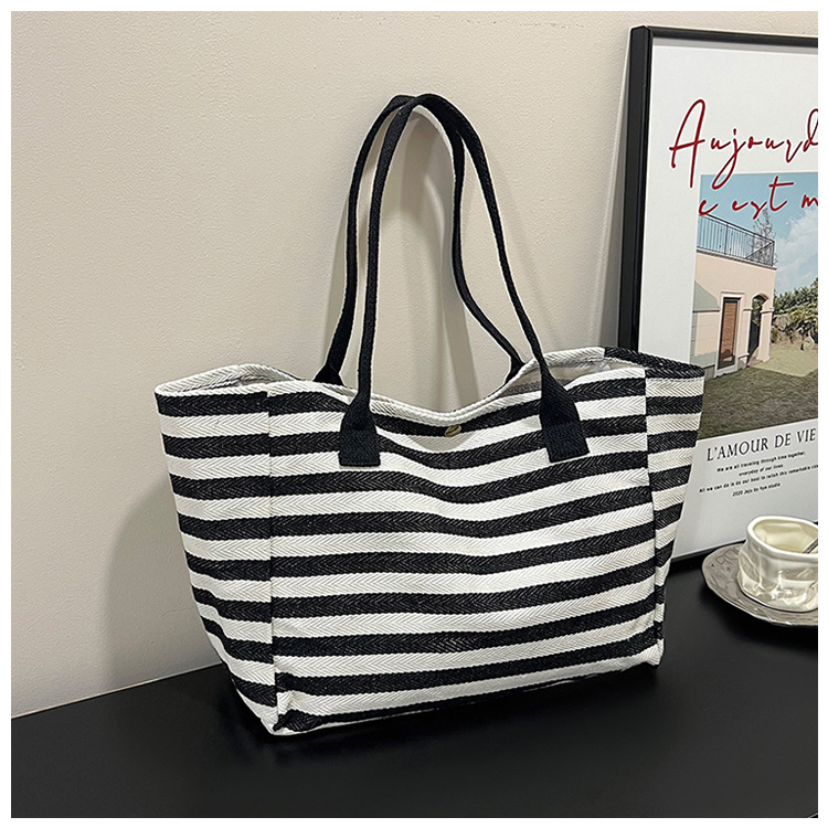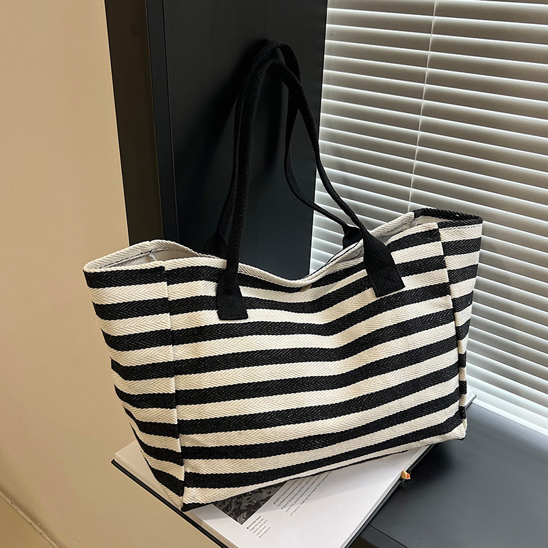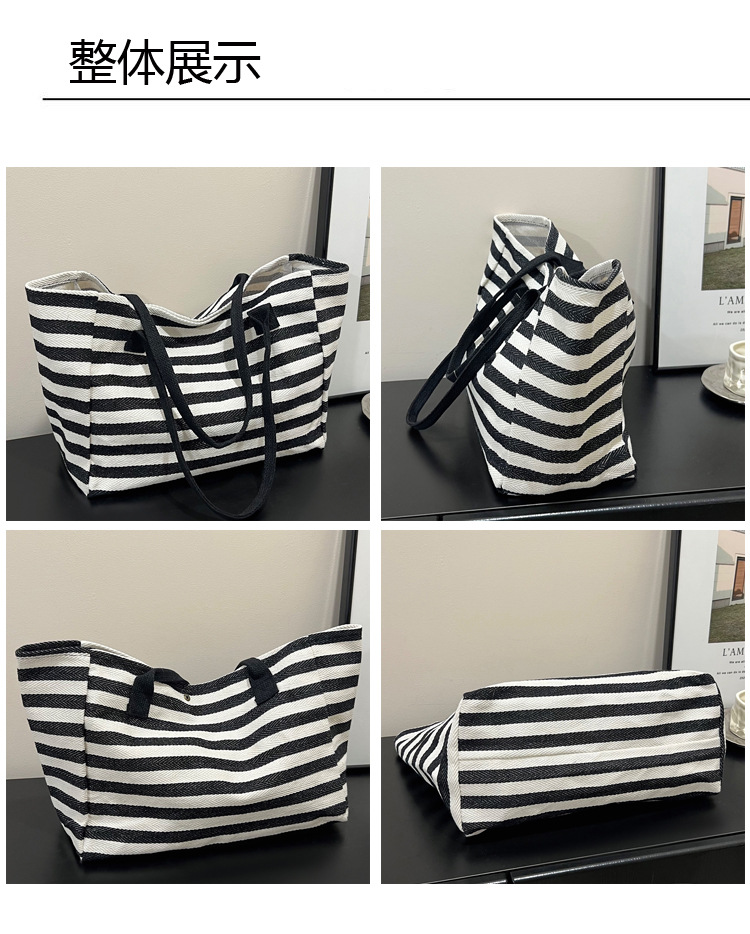 통근 캔버스 가방 여성 대용량 핸드백 가방 2025 새로운 줄무늬 어깨 엄마 토트스토어 가기