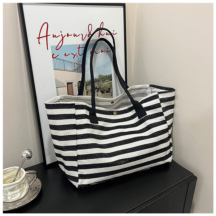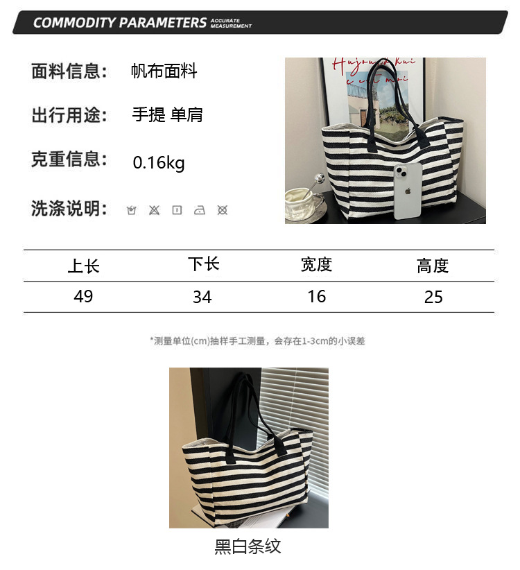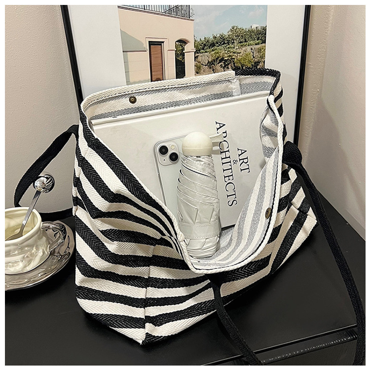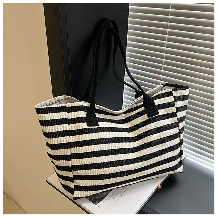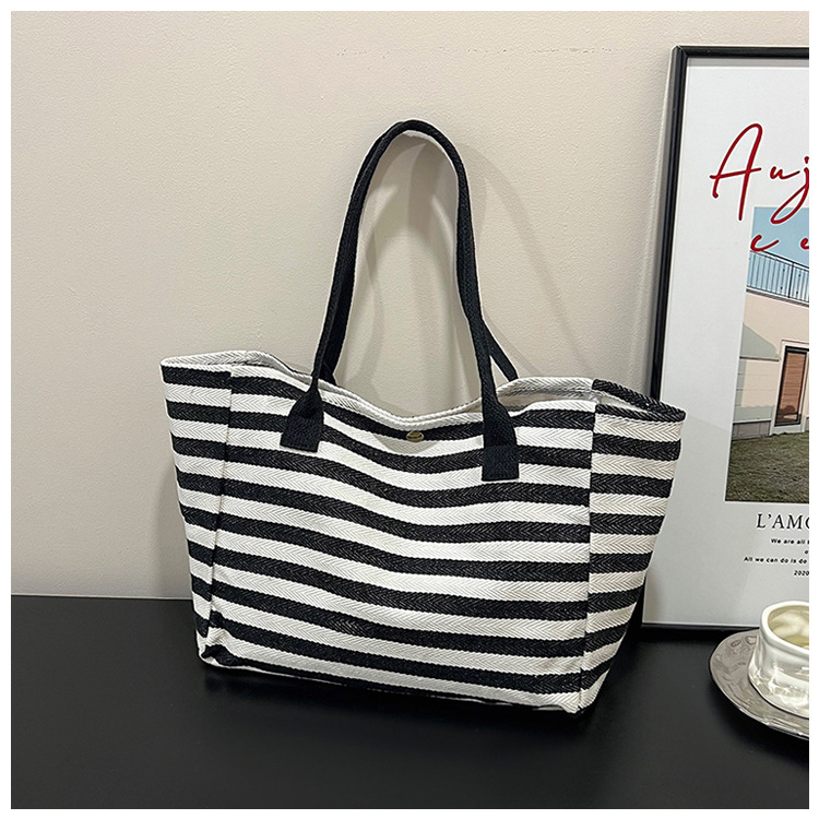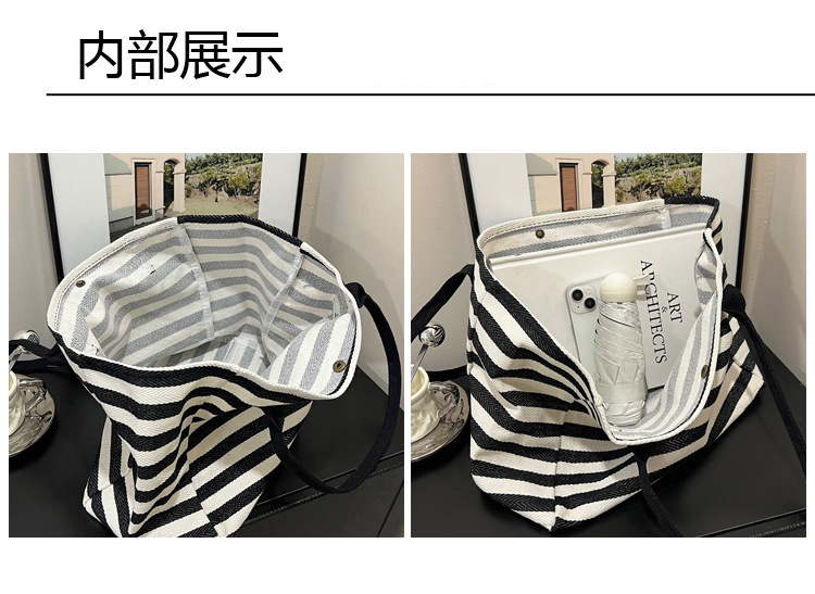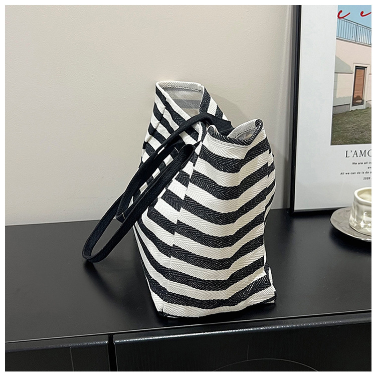 통근 캔버스 가방 여성 대용량 핸드백 가방 2025 새로운 줄무늬 어깨 엄마 토트스토어 가기