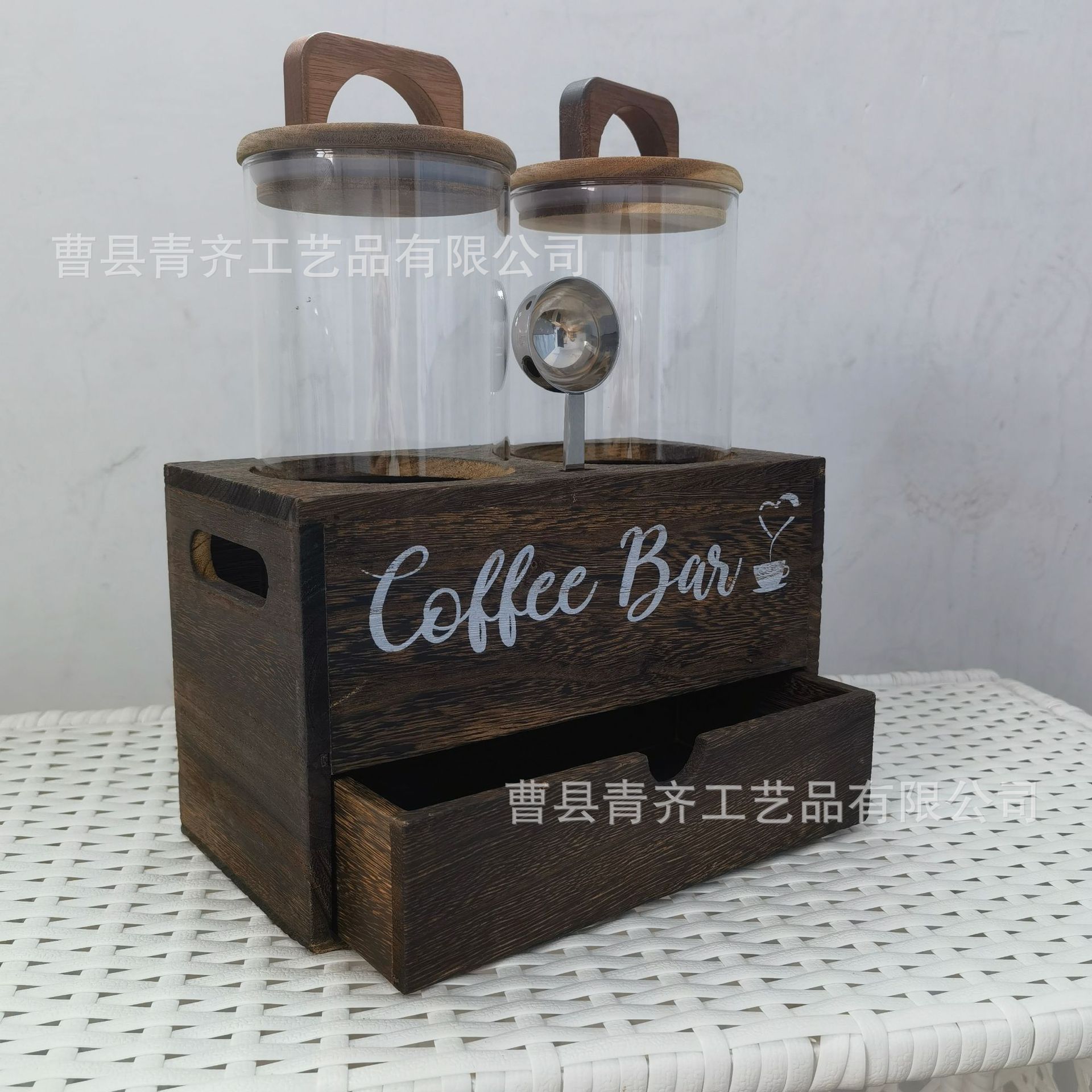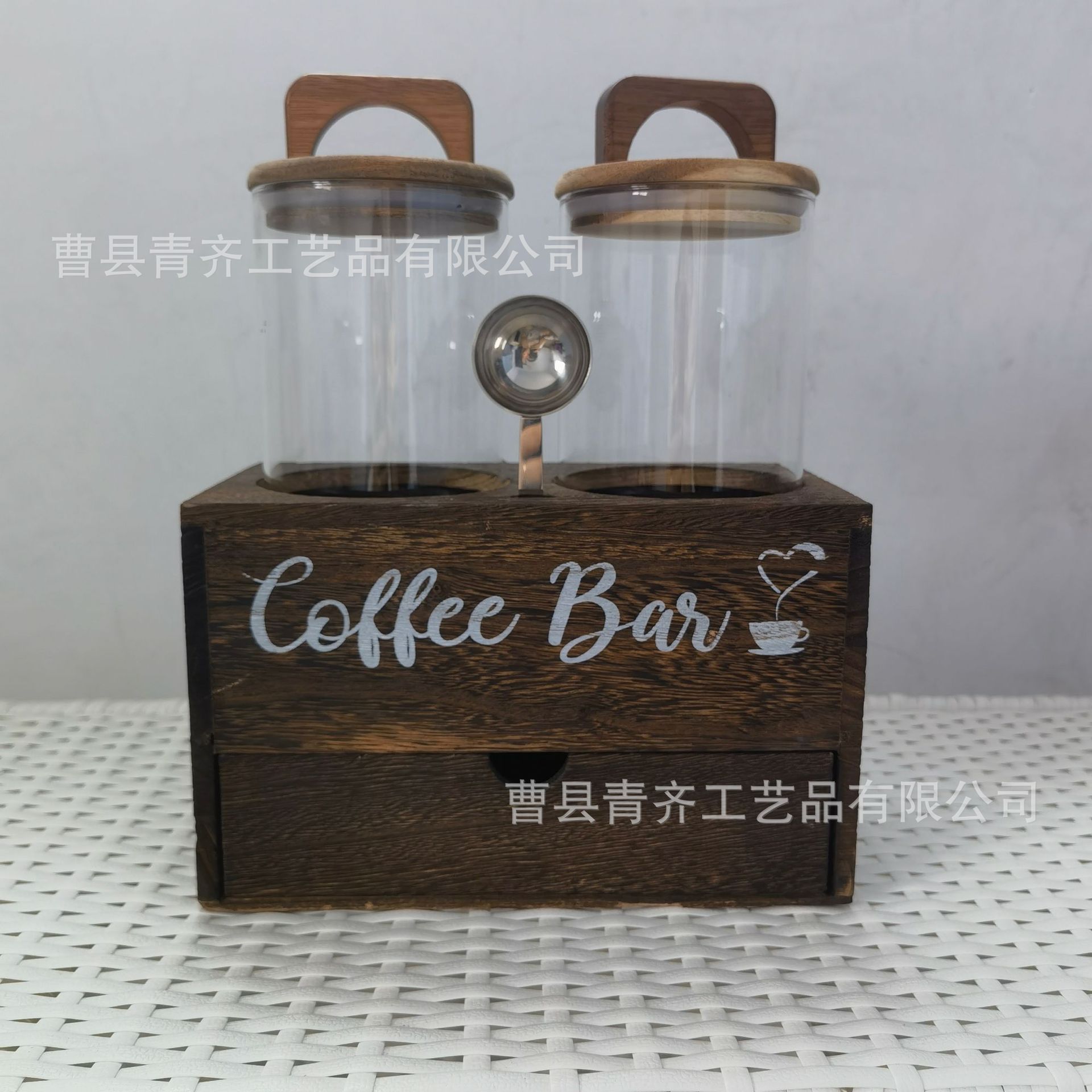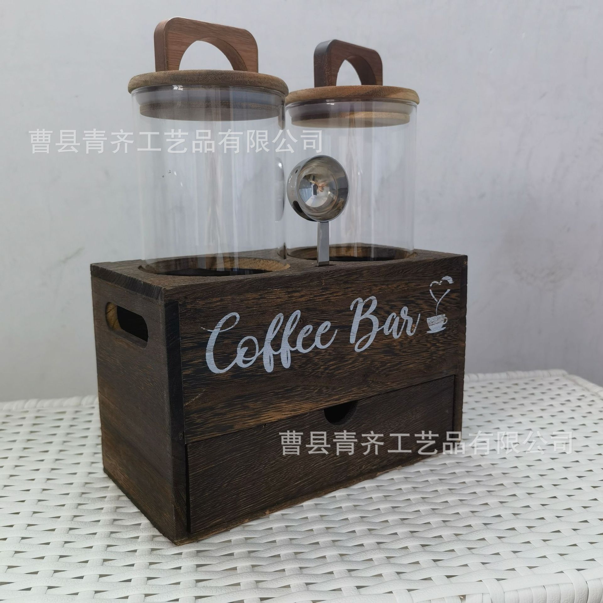 스팟 나무 커피 콩 보관함 헤비 번트 컬러 나무 커피 콩 보관함 데스크탑 커피 콩 보관함