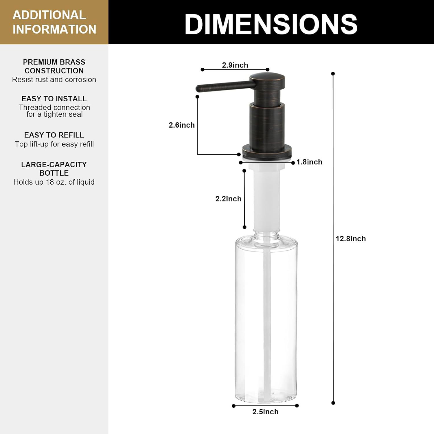 现代设计-专为厨房水槽设计的擦油青铜皂液器,拥有光滑的喷嘴,确保泵送和分配之间的平稳过渡,既实用又美观。尺寸-厨房水槽喷嘴的皂液分配器延伸2.25英寸。