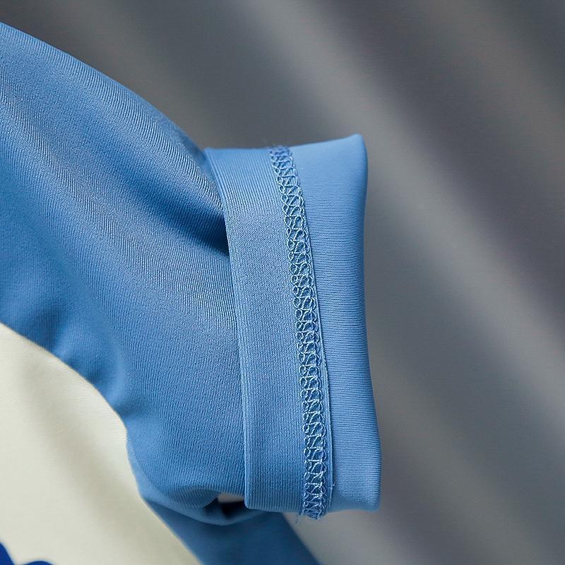 • 파란색 점프수트 + 수영모 + 수영 고글