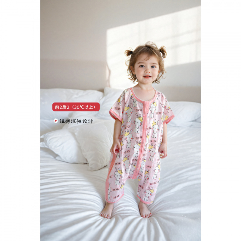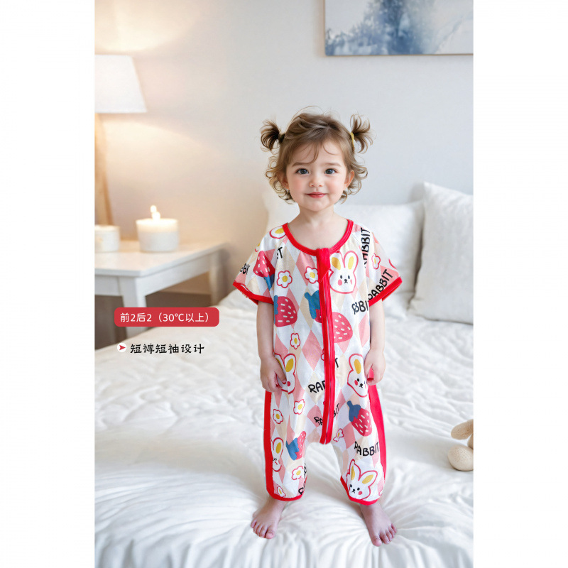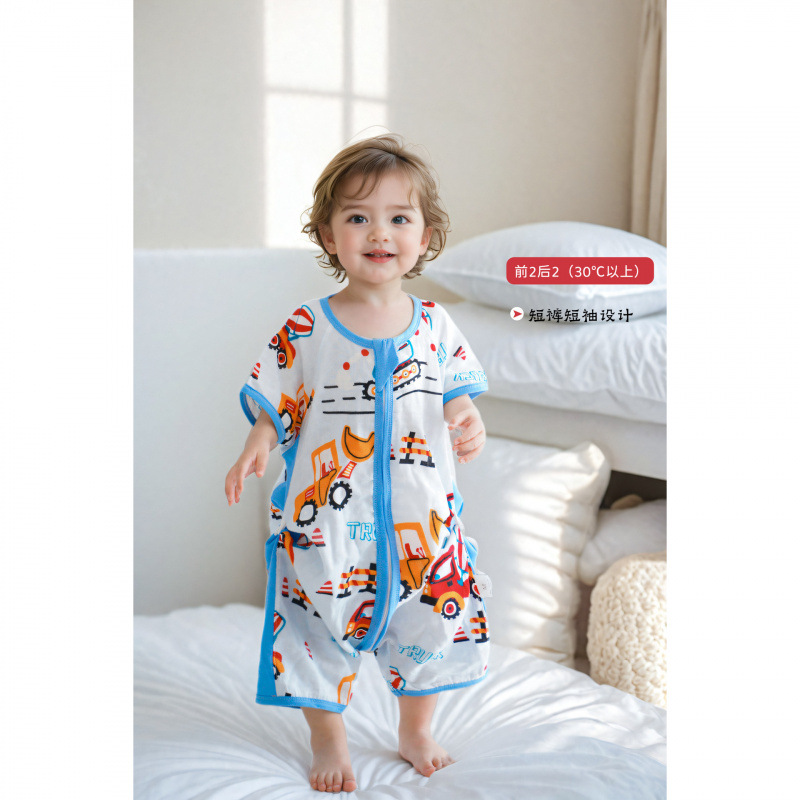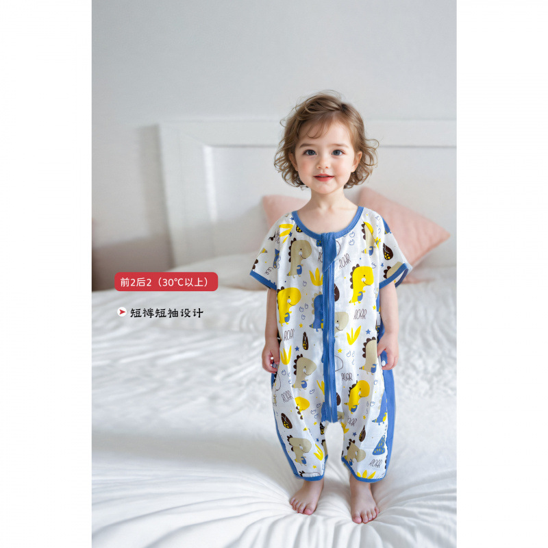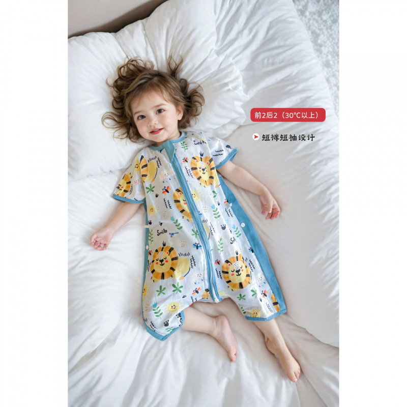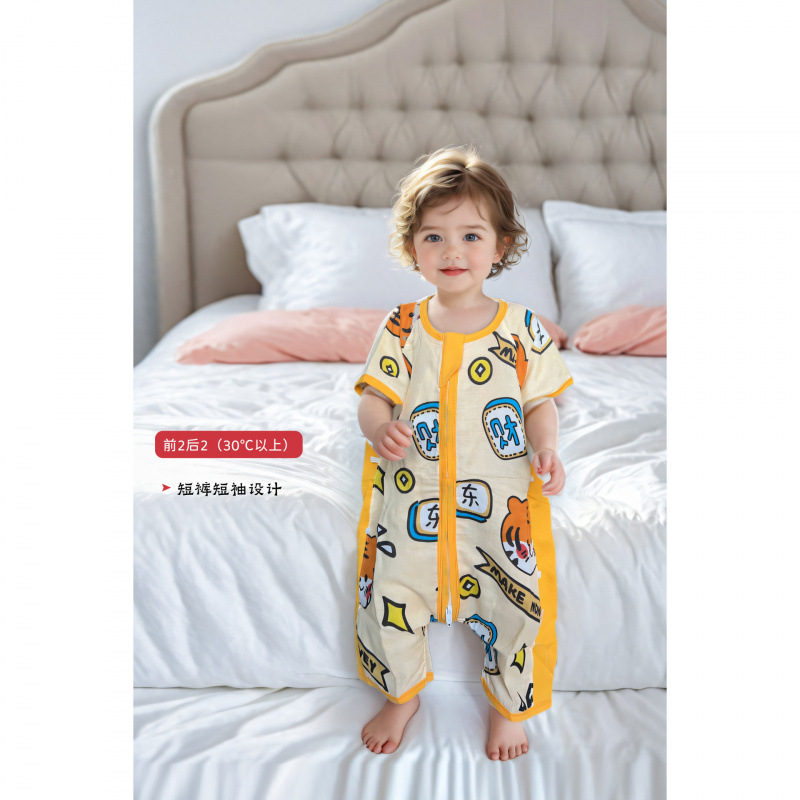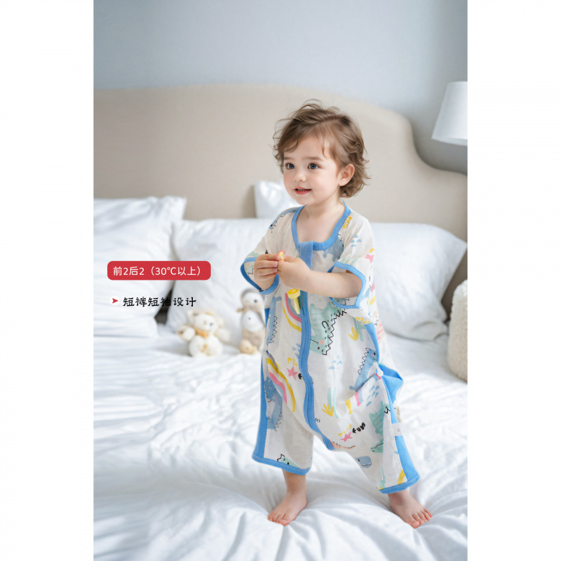 아기 봄 여름 얇은 거즈 순수/면 침낭 아기 반팔 다리 분할 에어컨 안티 킥 이불 중대형 어린이 원피스